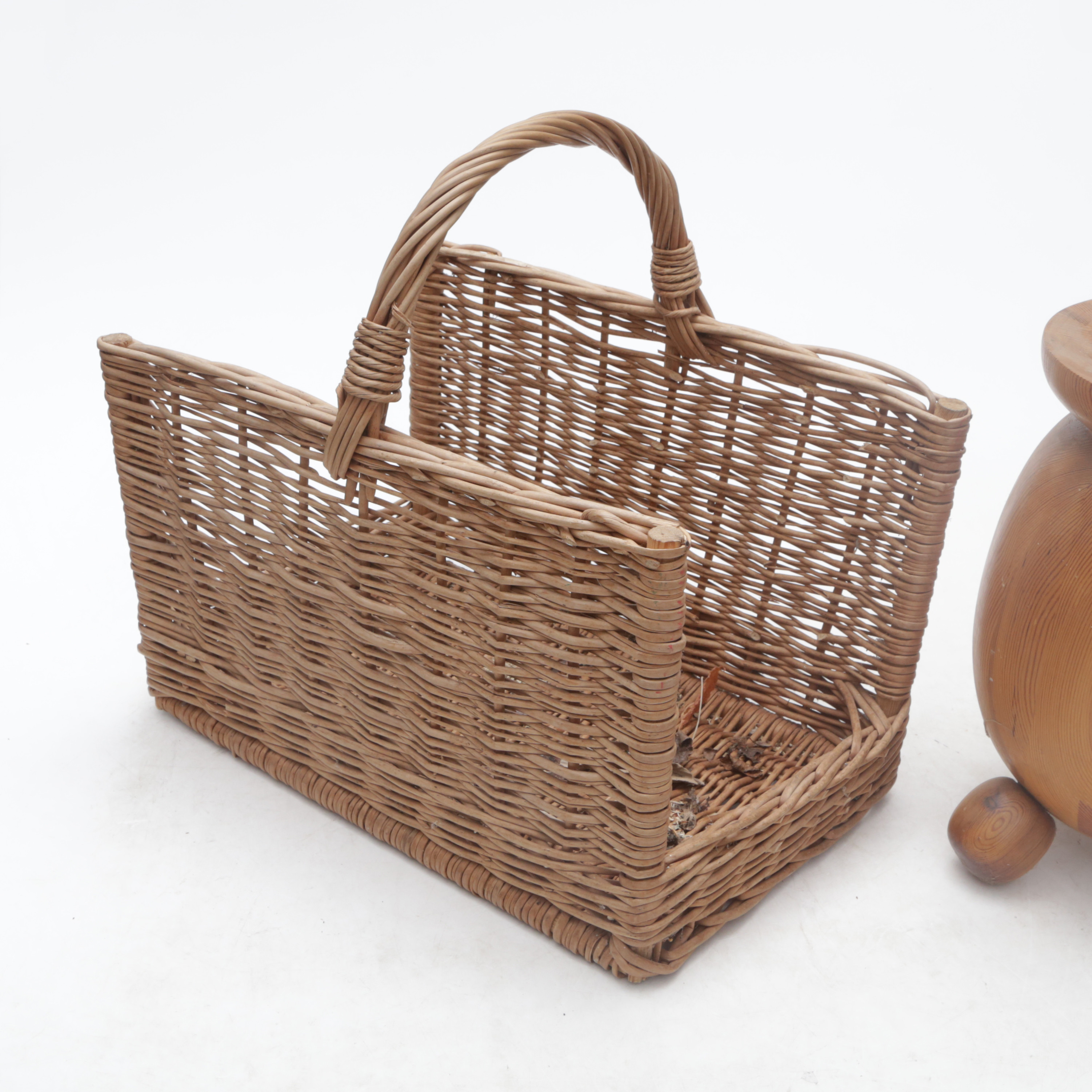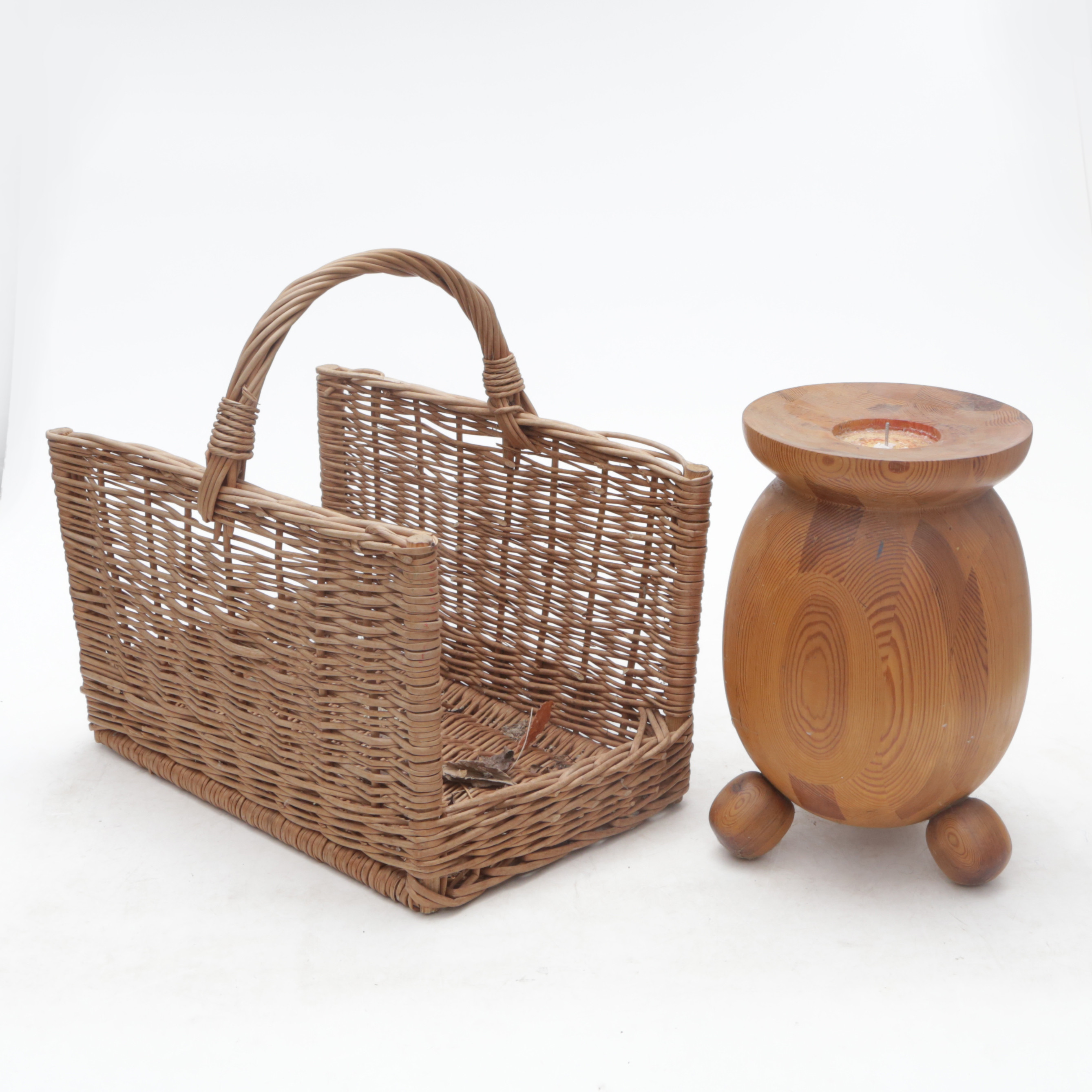 4385199. CANDELABRO DE SUELO Y CESTA DE MADERA, madera.