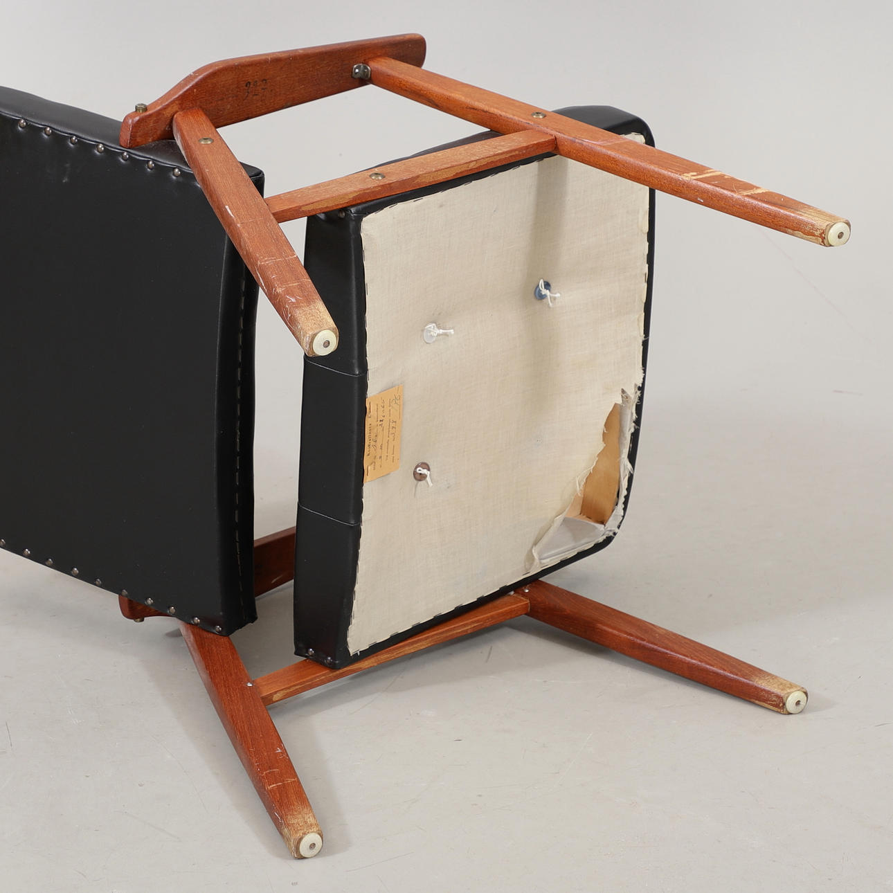 Desgastes normales de uso, patas rayadas, falta un botón, daños en la parte inferior de la tela.