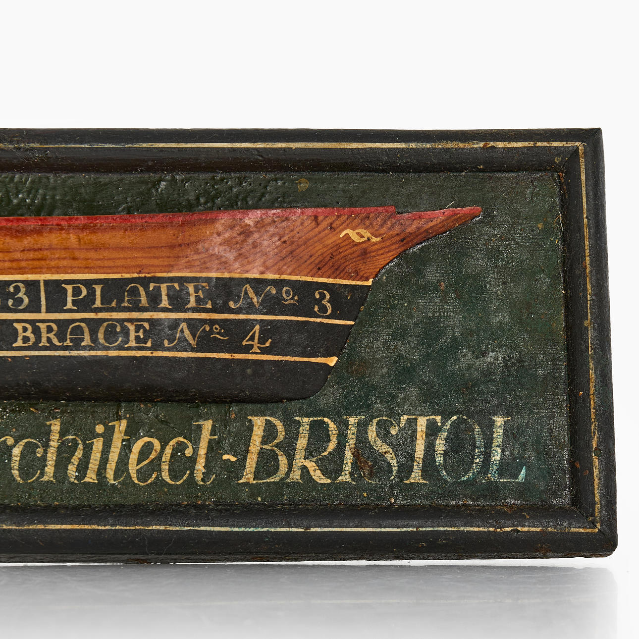 Madera pintada, marcada como B. Fell Esq. Arquitecto naval de Bristol.