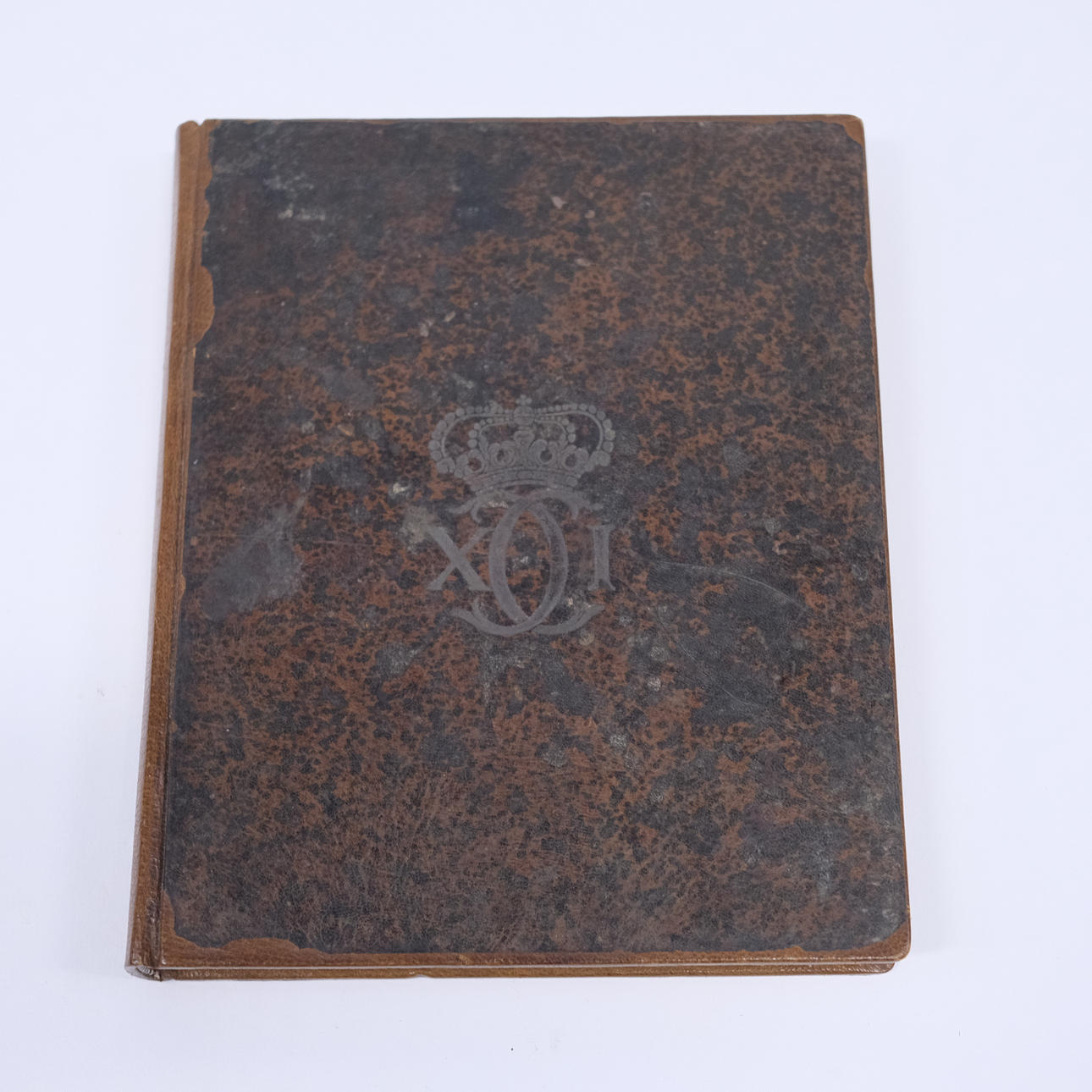 El emblema de Carl XI. Hojas con bordes dorados. Dimensiones: 19,5 x 16 cm.
