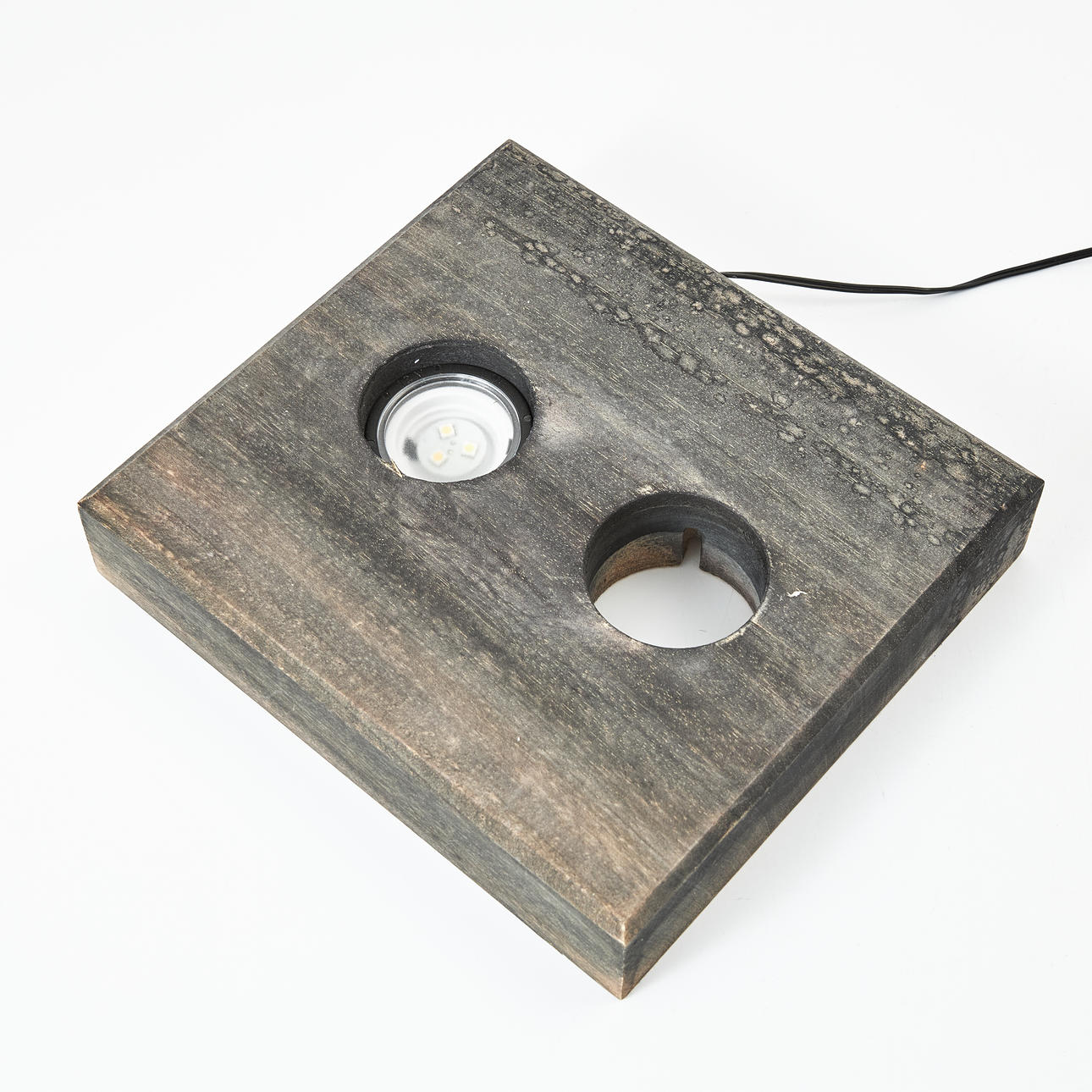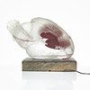 Vidrio, altura 15 cm, longitud 38 cm. Firmado C. Uvest. Tabla de madera con iluminación incluida, falta una fuente de luz. Altura total con tabla de madera 20 cm.