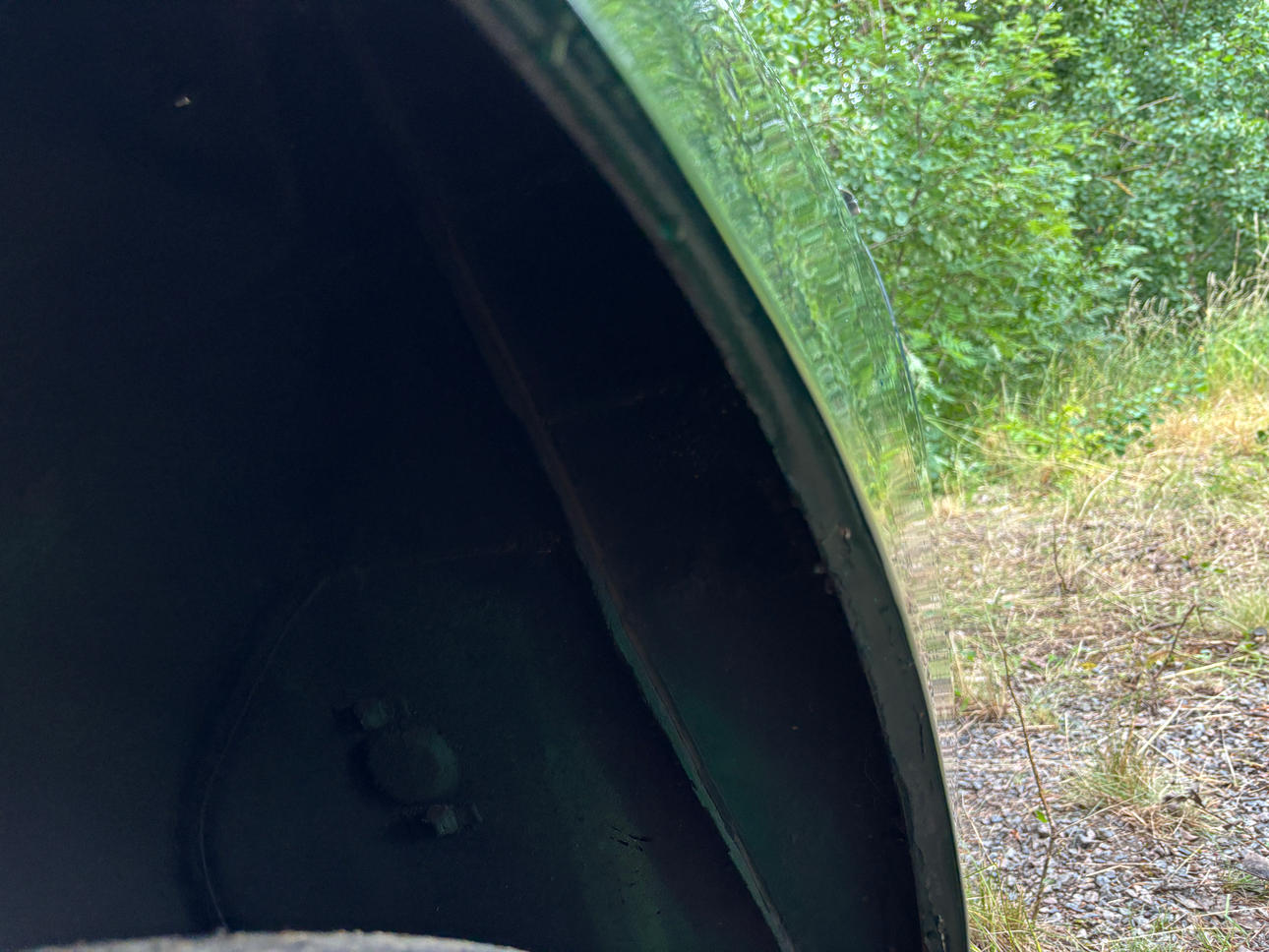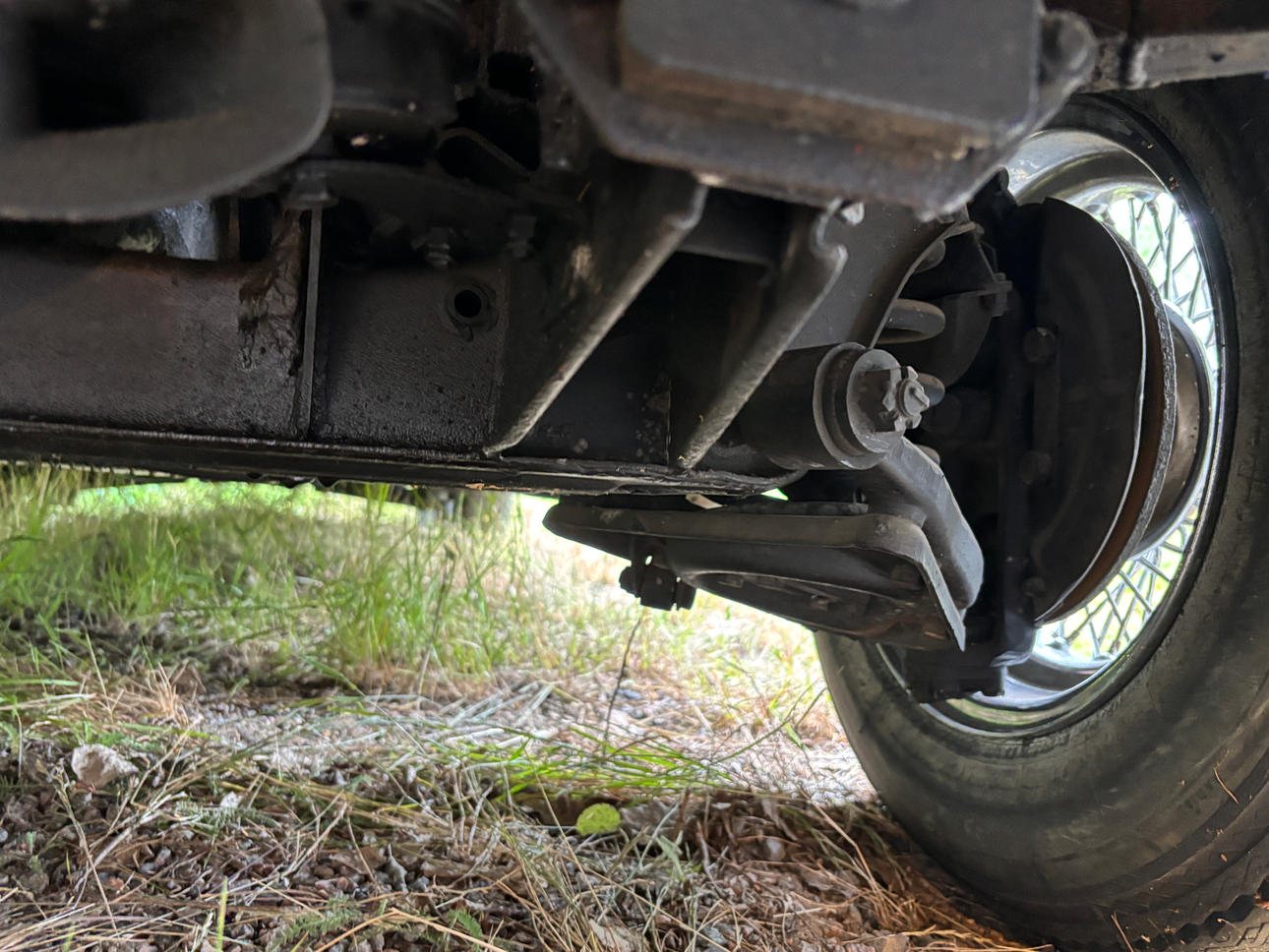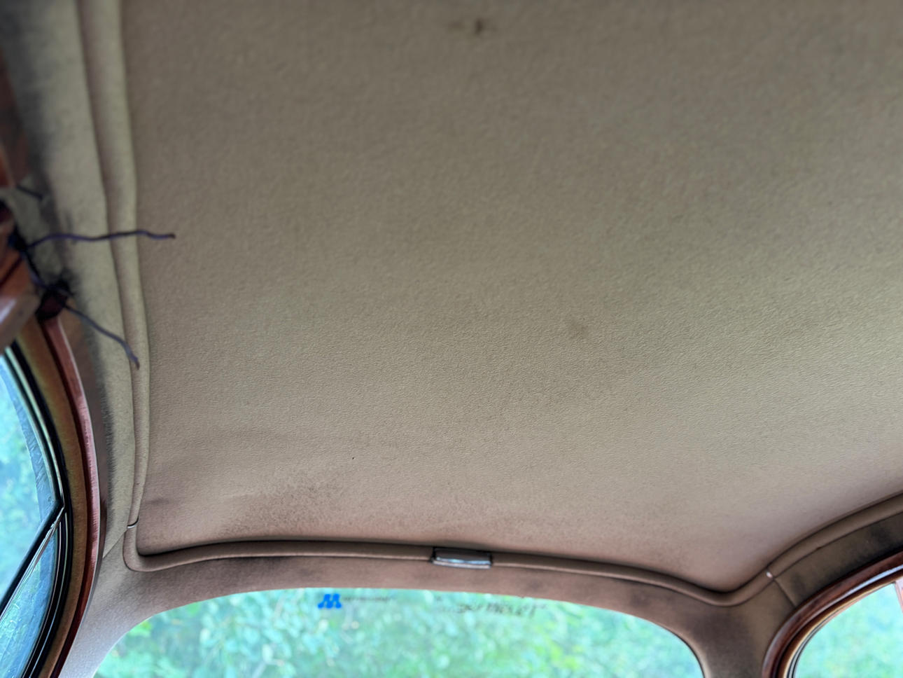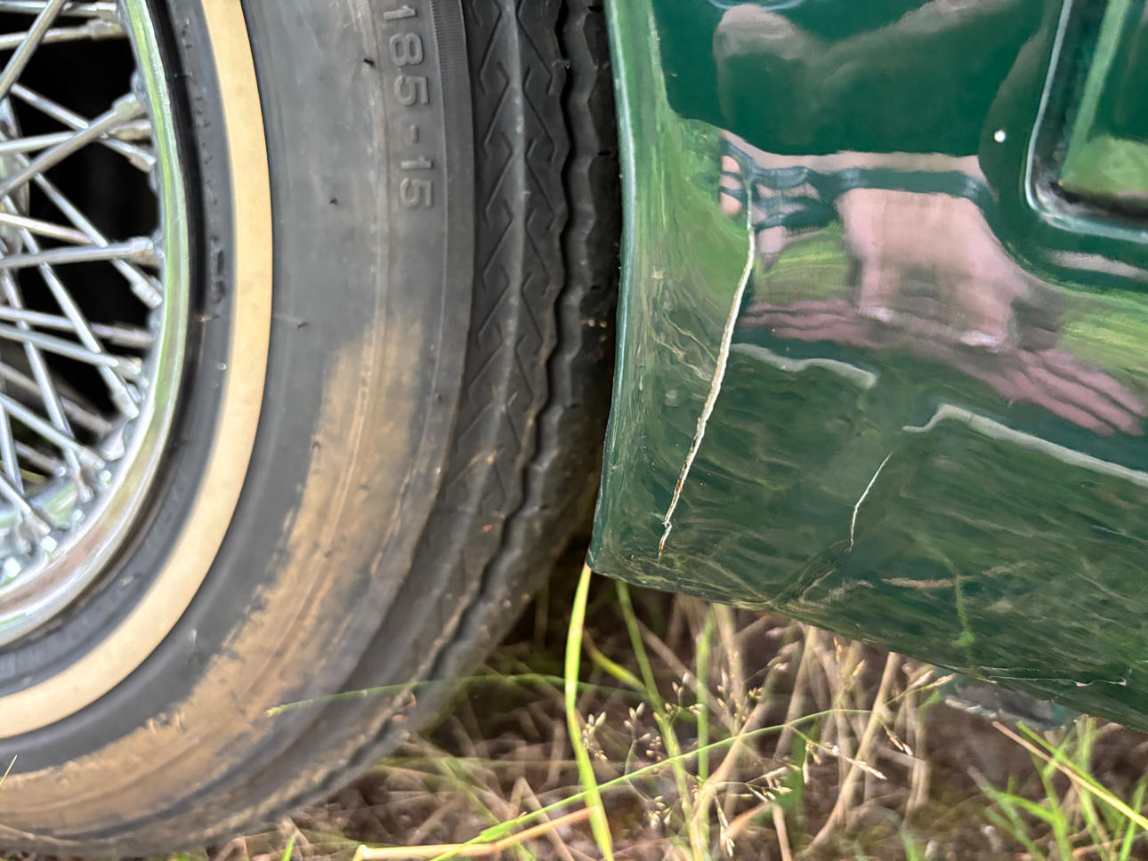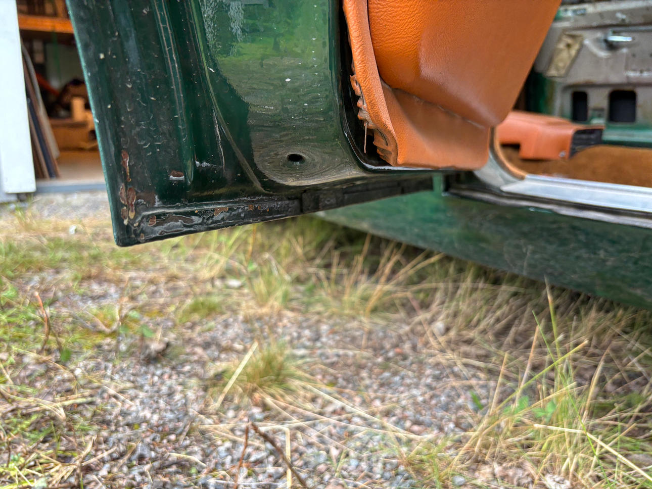 La carrocería y el cromo están en buenas condiciones, ya que el coche ha estado guardado en un garaje cálido desde 1979. Por lo tanto, vemos un cuerpo que está bastante libre de óxido. Se encuentra óxido en los sujetadores de los gatos.