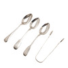 Compuesto por un par de pinzas para azúcar con estampado de Jorge III, con el sello William Collings, Londres 1792, de 15 cm de largo.