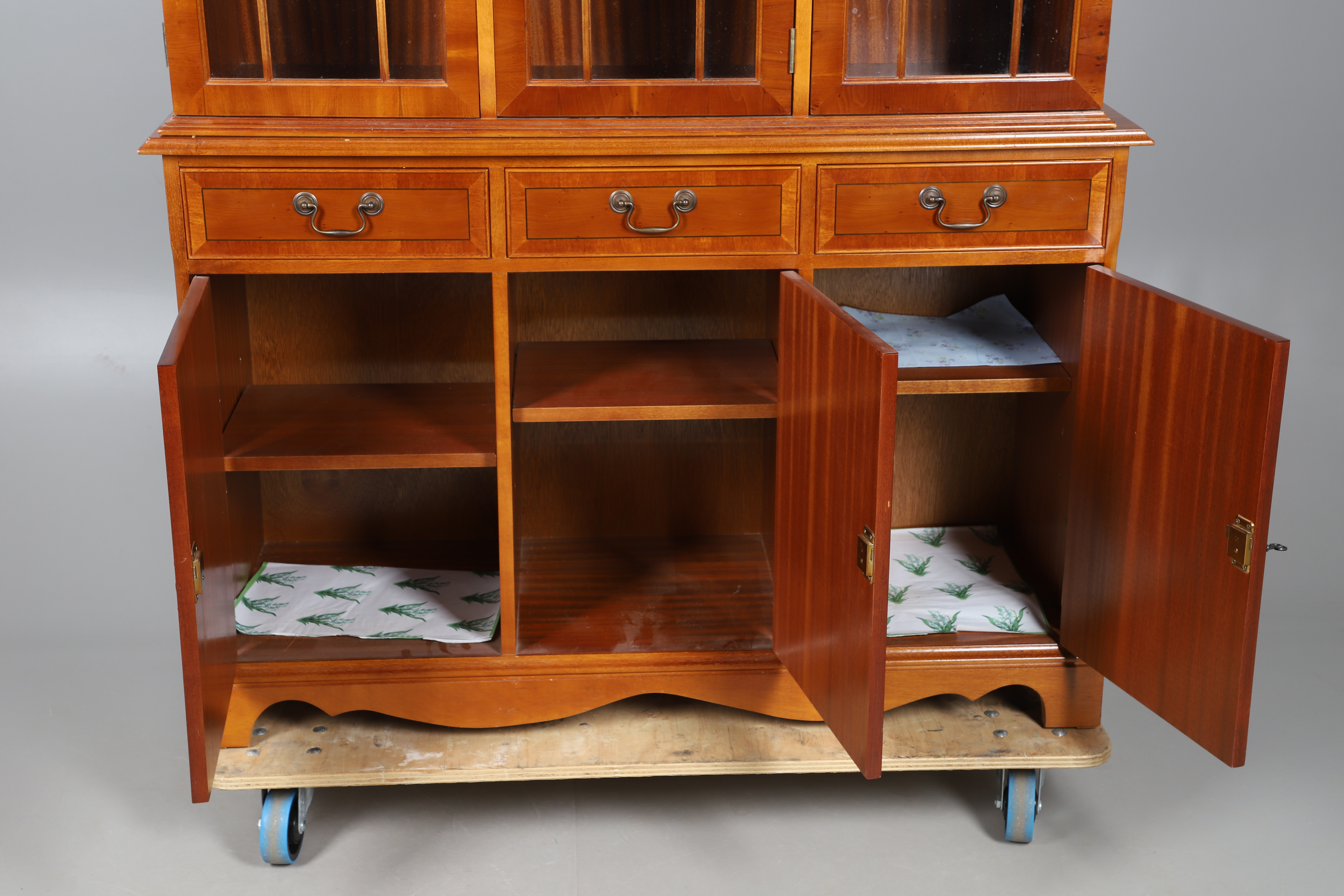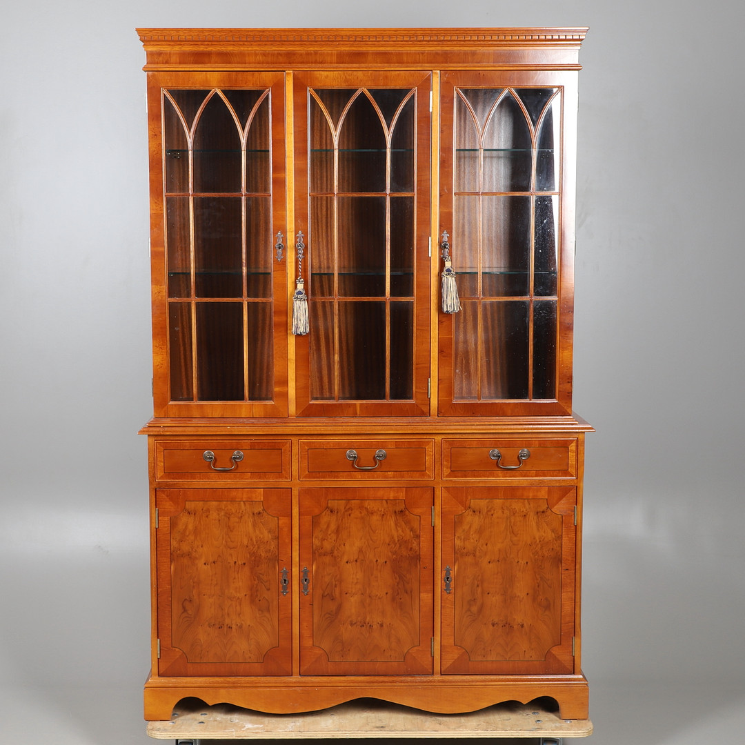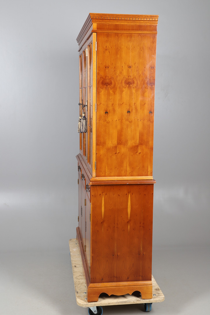 4401256. UNA ESTANTERÍA DE DOS PARTES CON ACABADO DE MADERA DE TEJO.