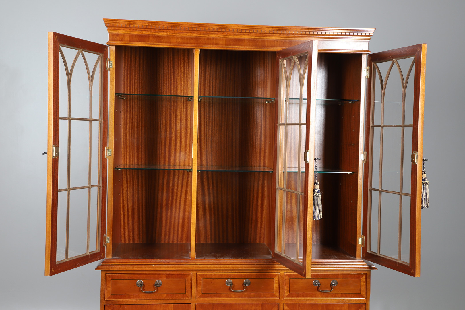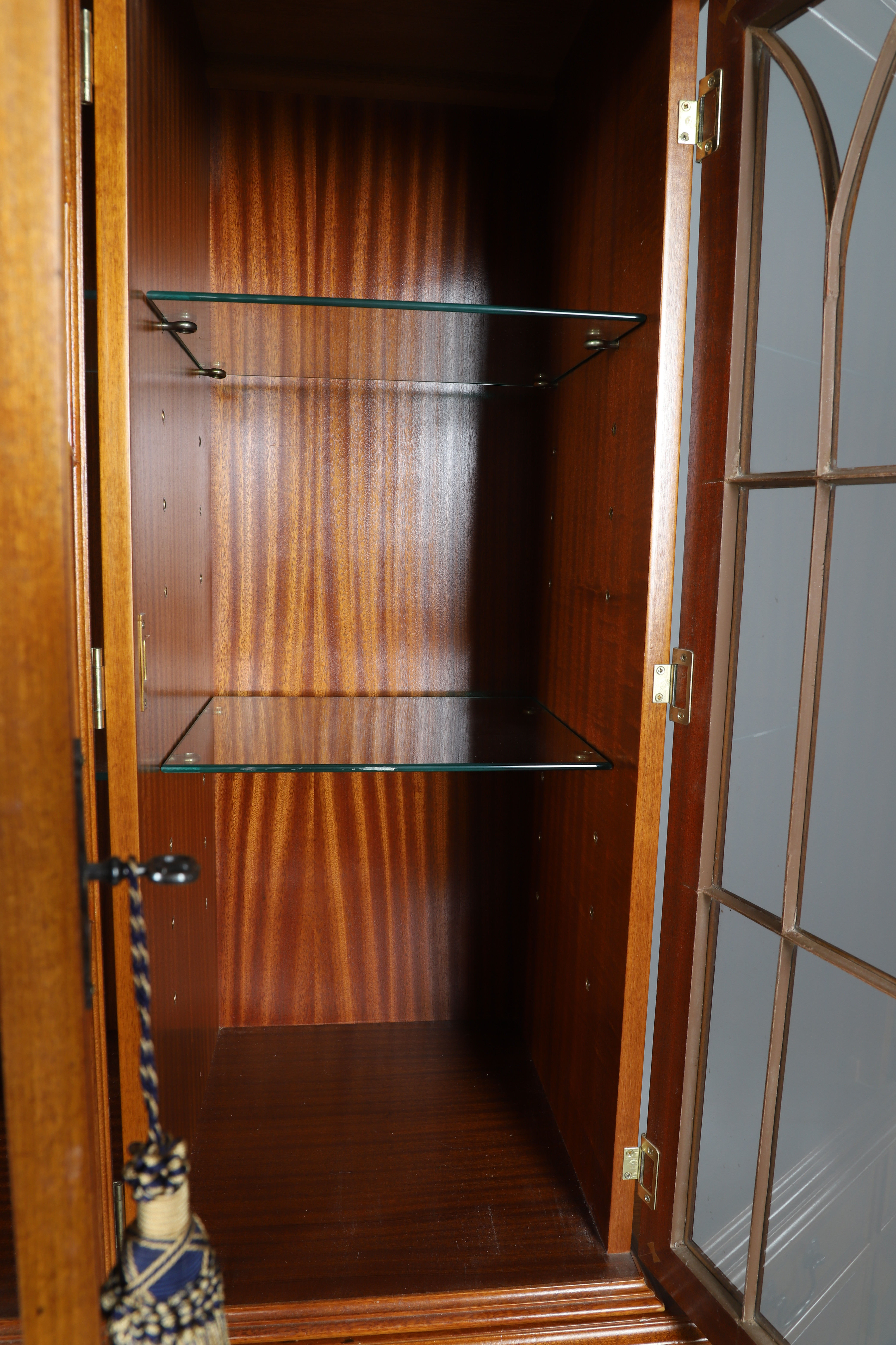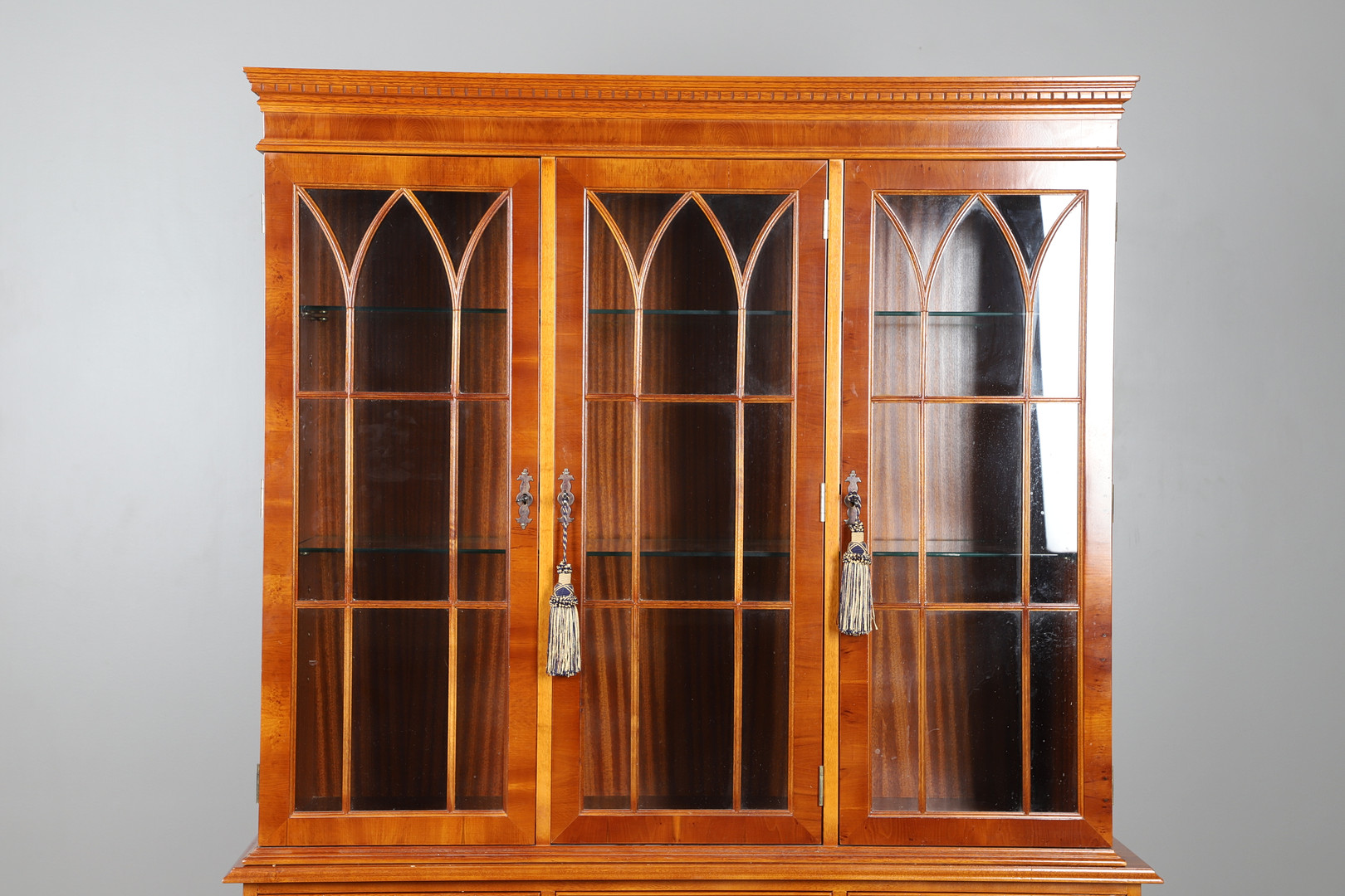4401256. UNA ESTANTERÍA DE DOS PARTES CON ACABADO DE MADERA DE TEJO.