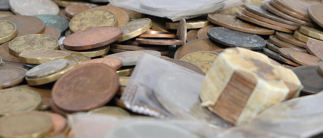 para incluir monedas de un centavo, monedas de tres peniques, coronas conmemorativas y seis peniques.
