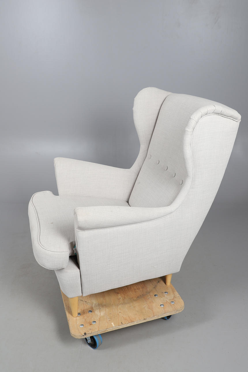 Uno con tapicería decorada con hojas verdes y blancas, estaba sobre los soportes delanteros del cabriole. Con reposabrazos que cubren los brazos a juego. Altura 105 cm, altura del asiento 47 cm. La otra tenía botones en la parte trasera y estaba apoyada sobre soportes cónicos. Altura 101 cm, altura del asiento 44 cm.