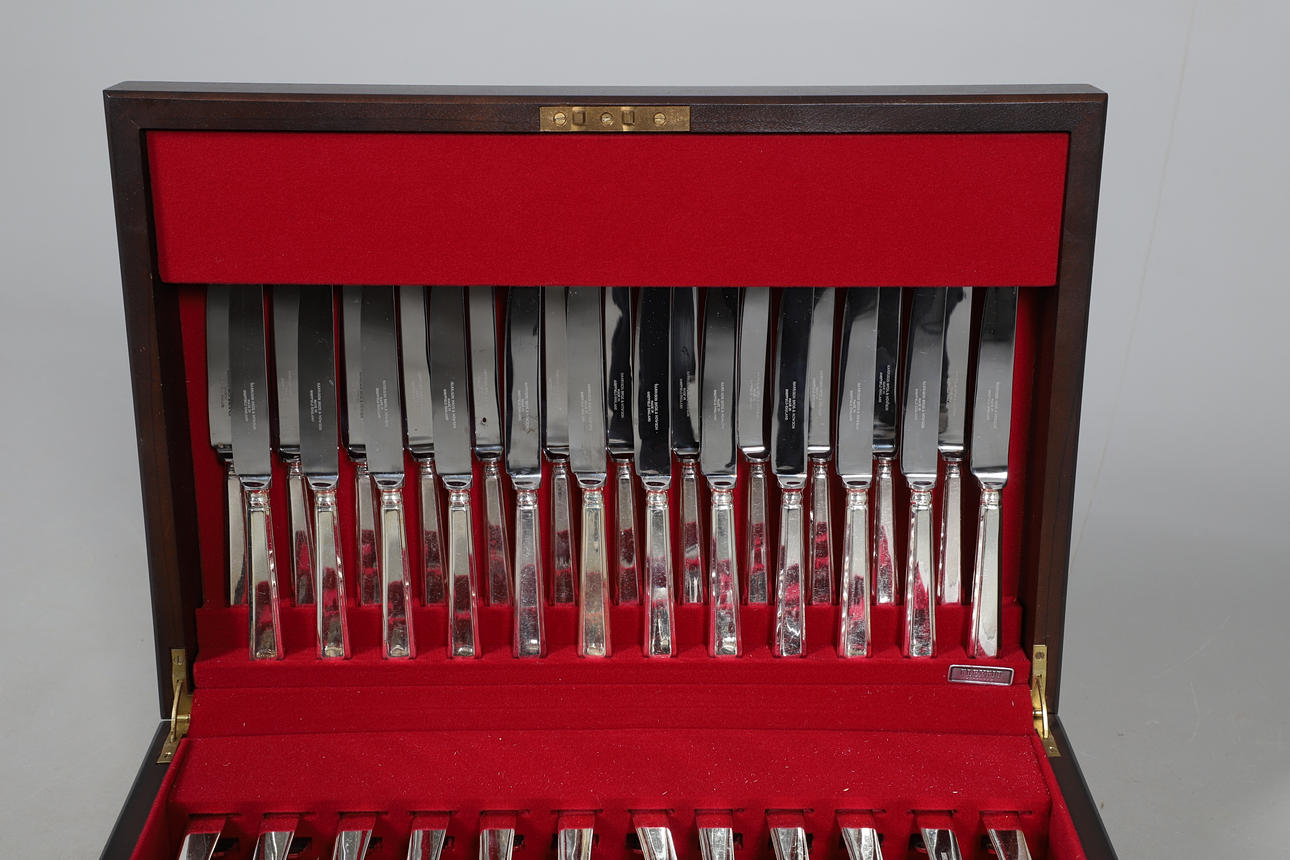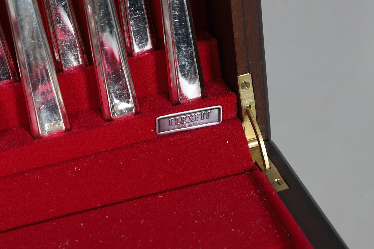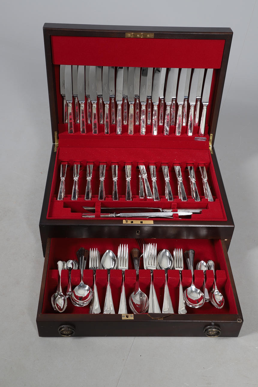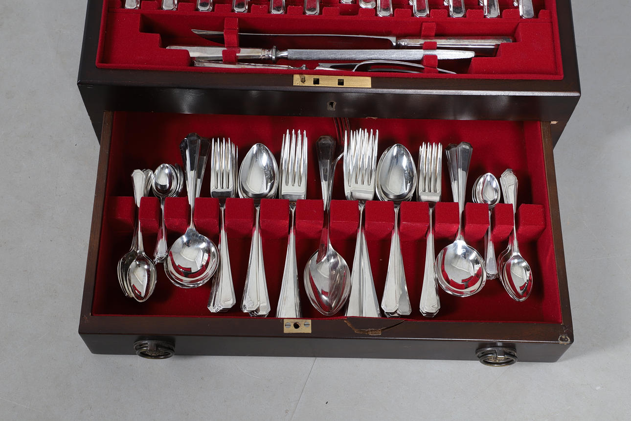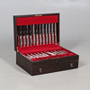 Diversas marcas y arañazos en los cubiertos en función de la edad y el uso. La caja también tiene varias marcas y arañazos por todas partes. Llave dentro de la caja. Ver imágenes en línea.