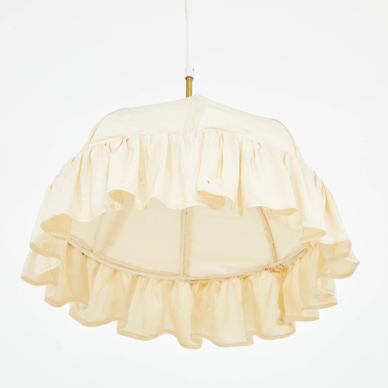 Pantalla de seda, marco de latón, firma Svenskt tenn. Altura aprox. 27 cm, excl. cordón, diámetro de unos 37 cm.