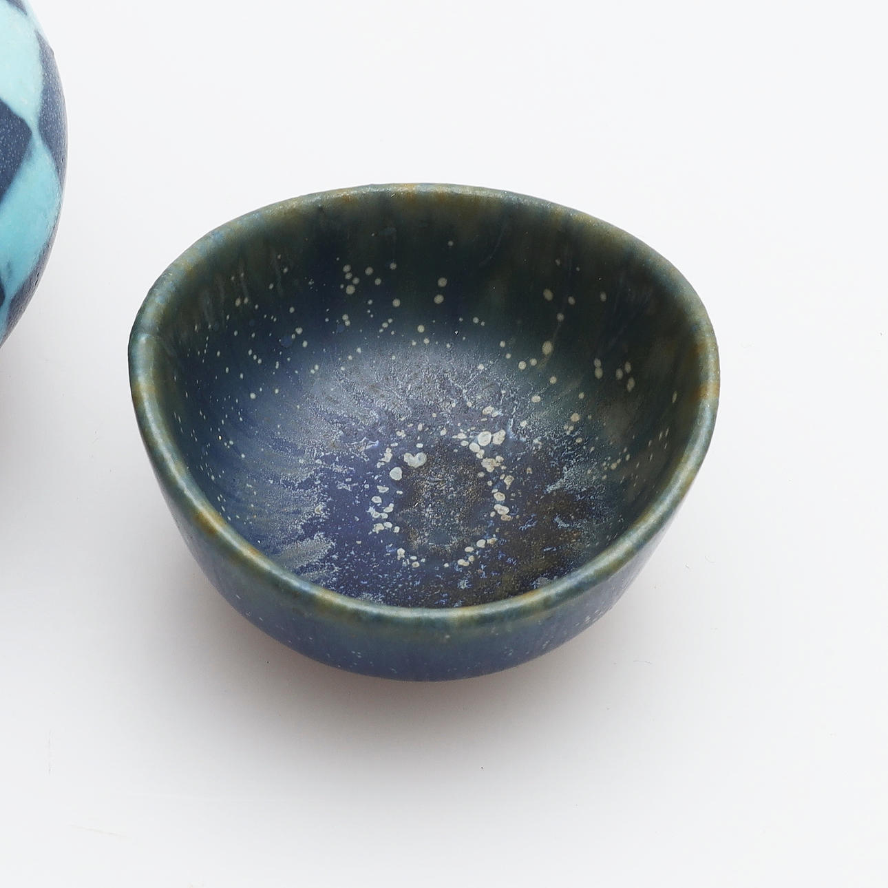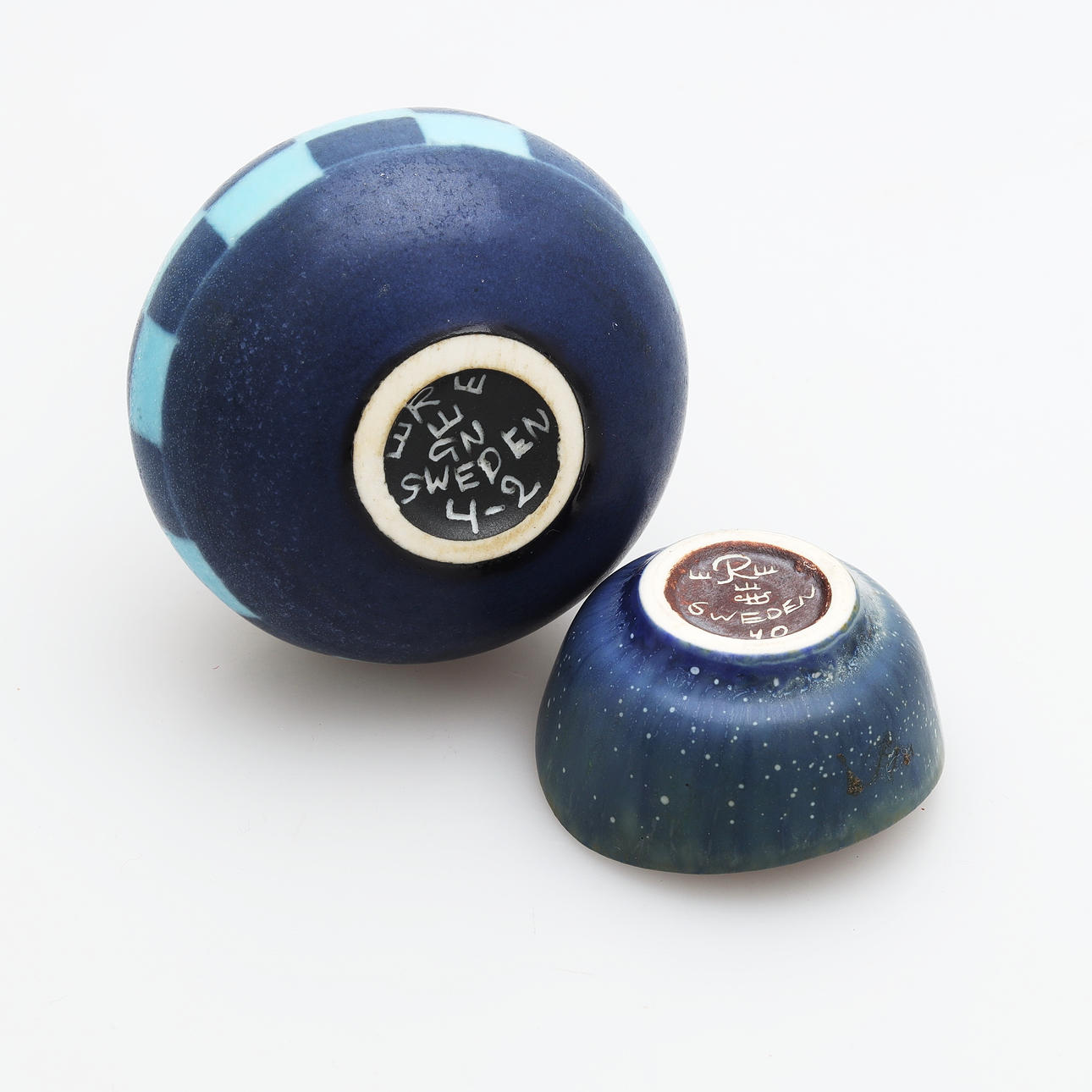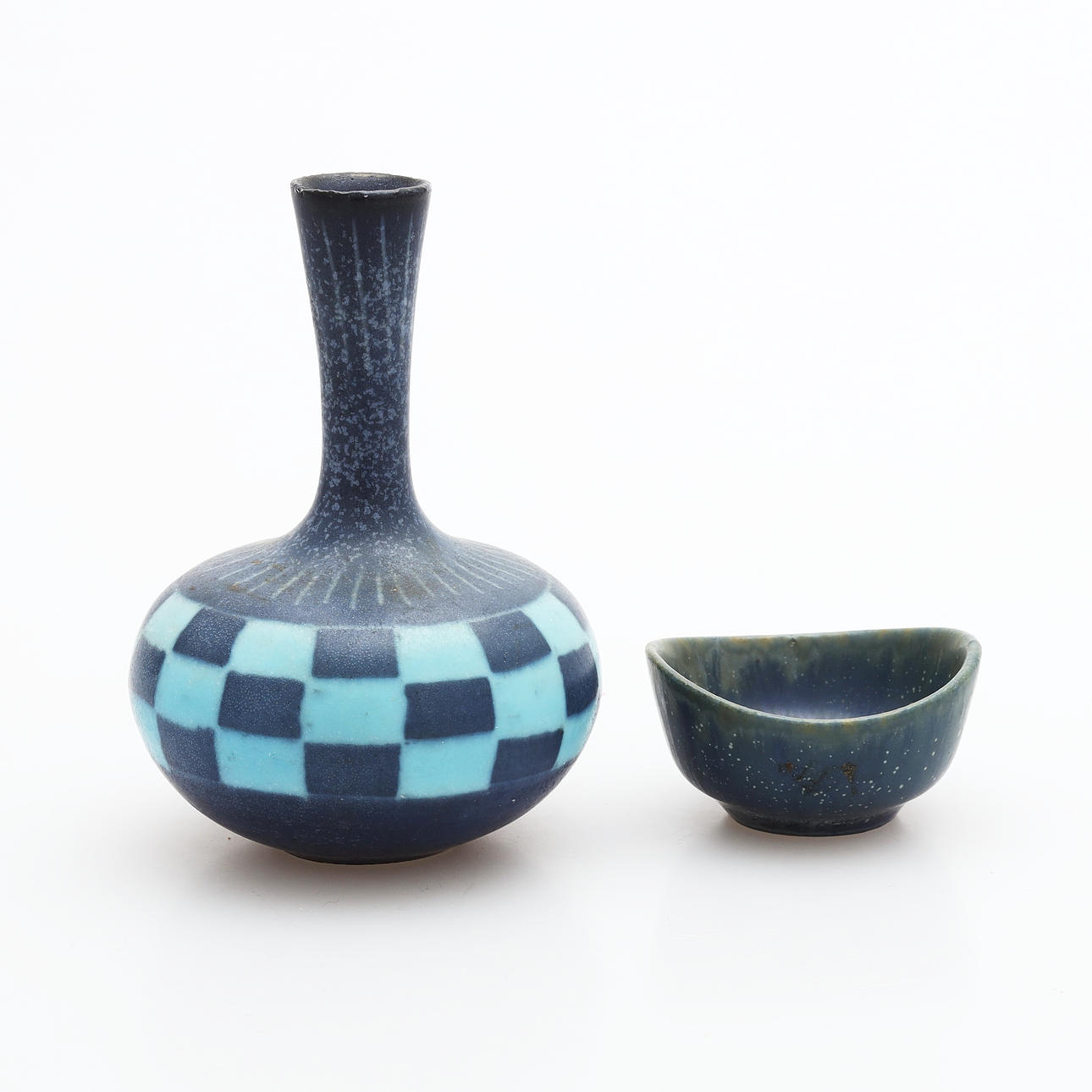 Cuenco, Carl Harry Stålhane, diámetro 40 mm. Jarrón Gunnar Nylund, altura 8 cm.