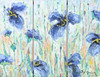 4416434. INGA ARNBÄCK. Flores azules, óleo sobre lienzo, tríptico, ss.