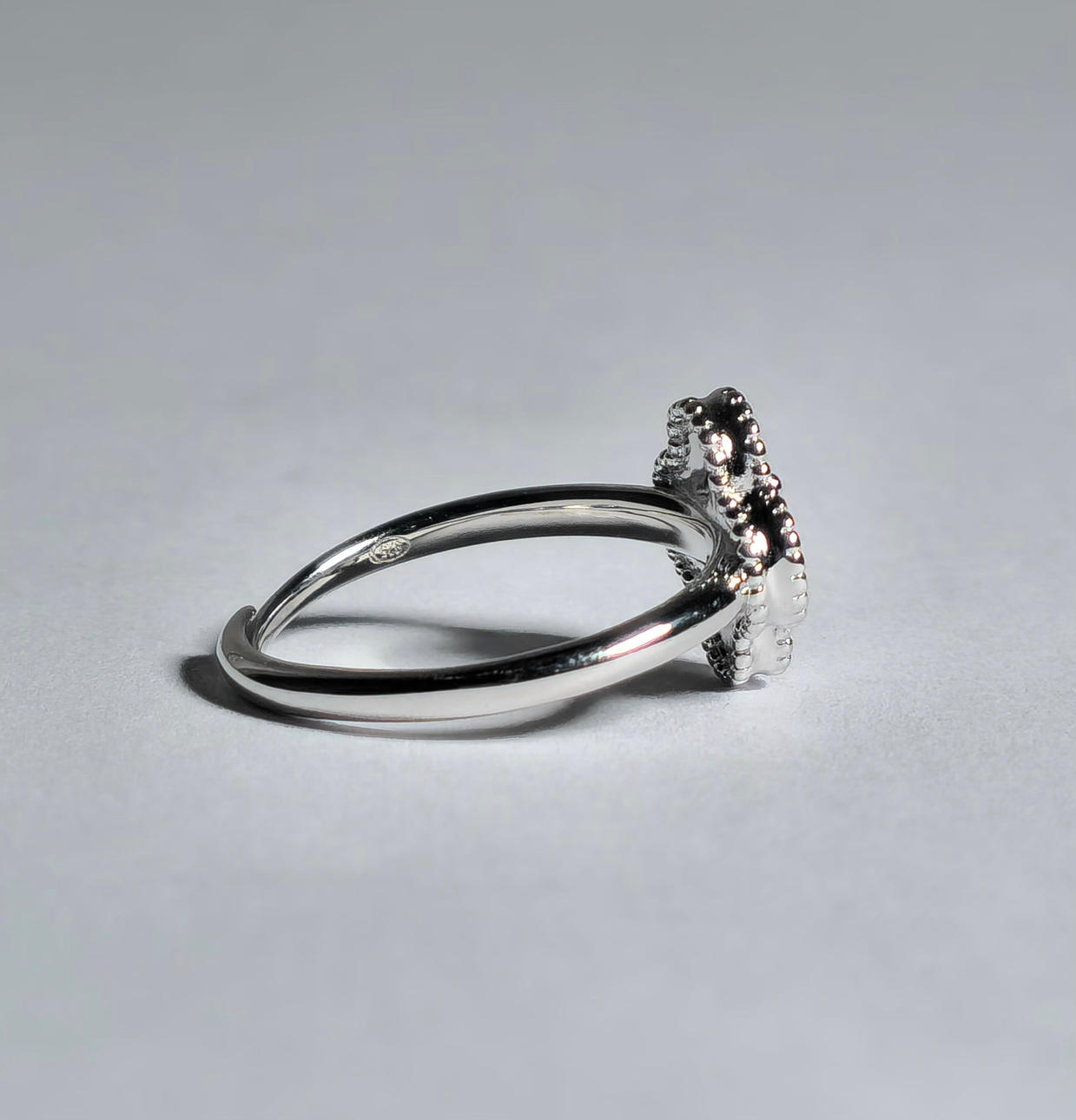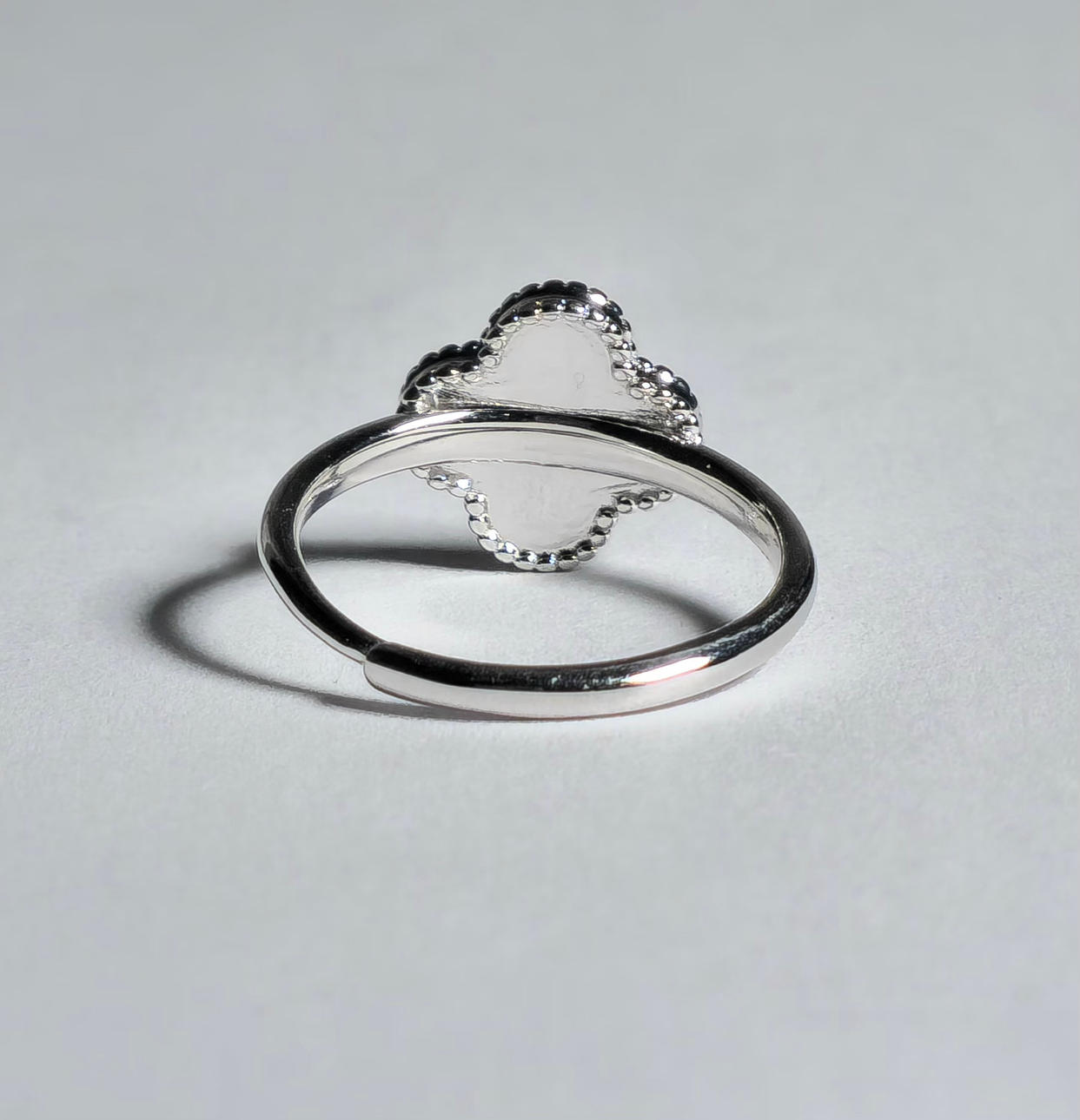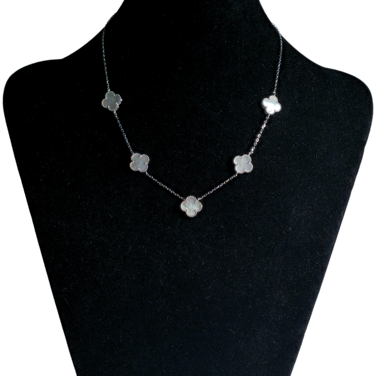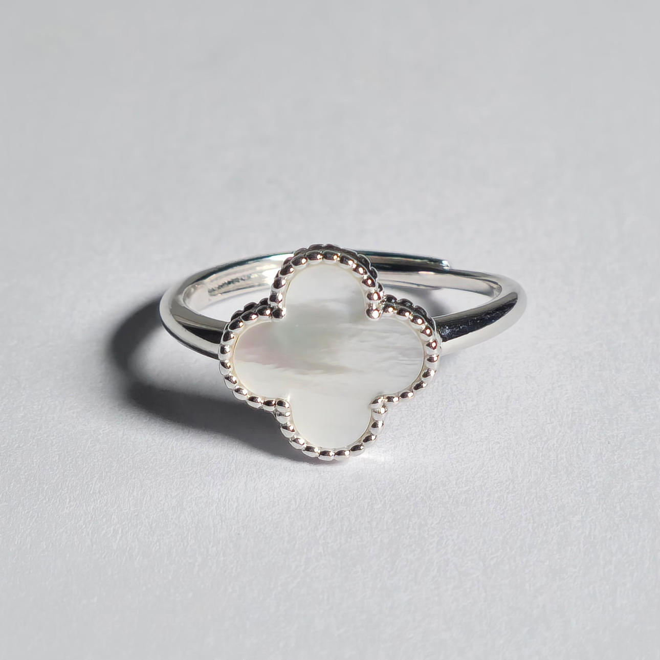 COLLAR Y ANILLO AJUSTABLE EN PLATA Y NÁCAR ESTILO VAN CLEEF.