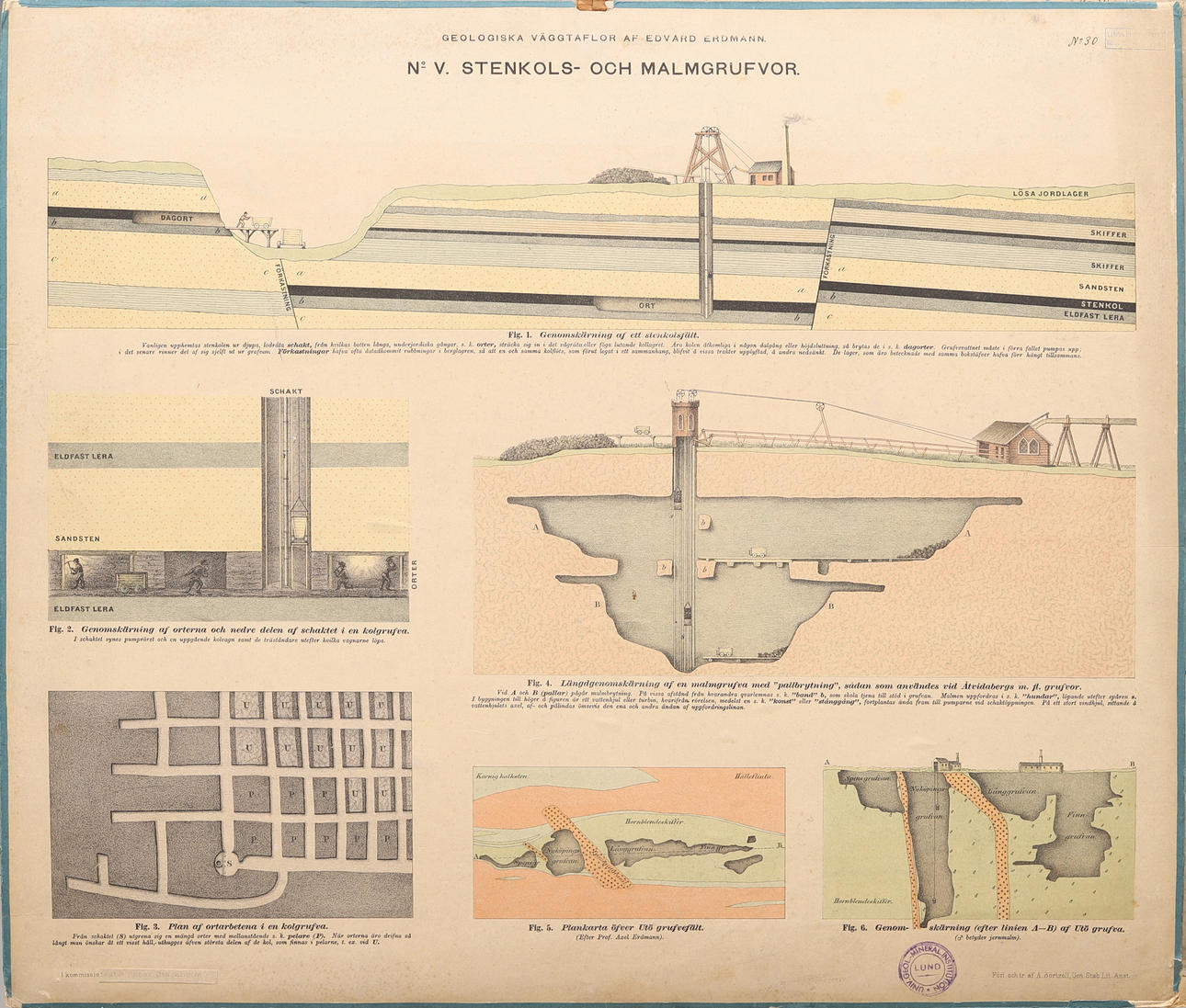 Förl. y probar. de A. Börtzell, Gen. Apuñalar. Iluminado. hormigas. Museo Geológico de la Universidad de Lund estampado. 59 x 65 cm y más pequeñas.