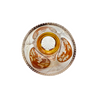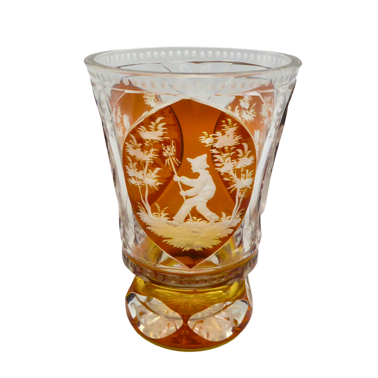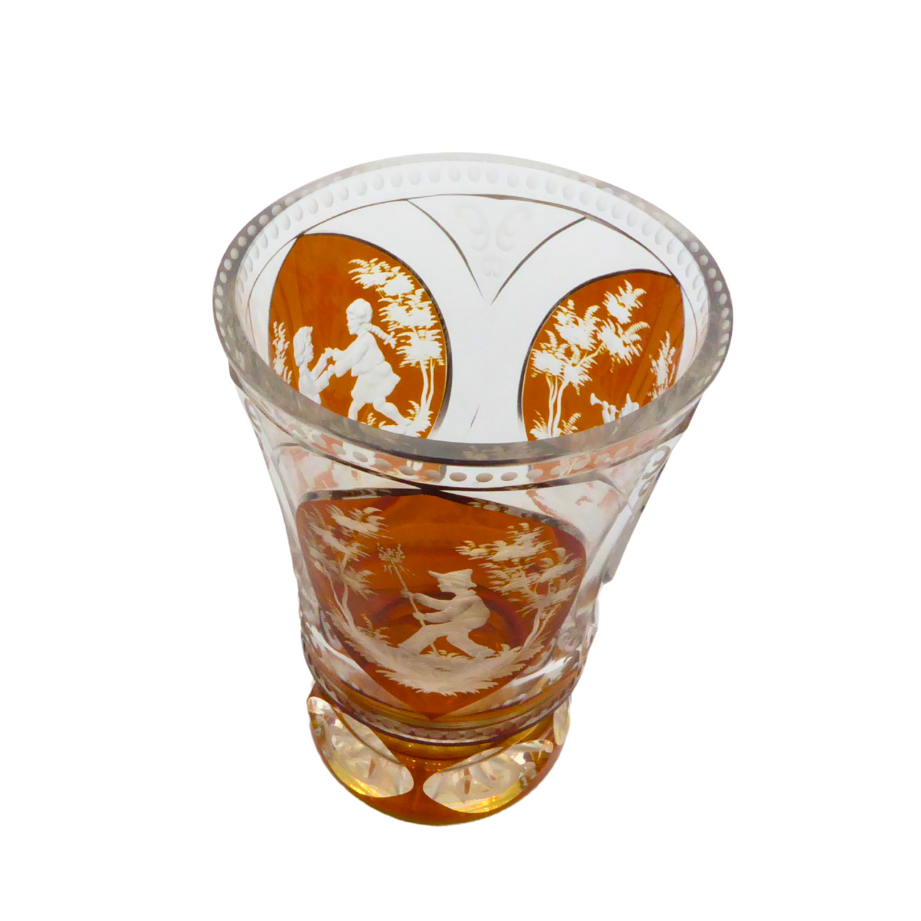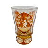 1. 2ª mitad del 19 Siglo, vidrio incoloro, teñido de marrón miel, cortes esféricos y con muescas ricas, representaciones en corte mate en la cara.