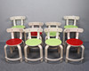 Silla más alta: 73 cm de altura, altura del asiento 52 cm. Silla más baja: altura 60 cm, altura del asiento 37 cm.
