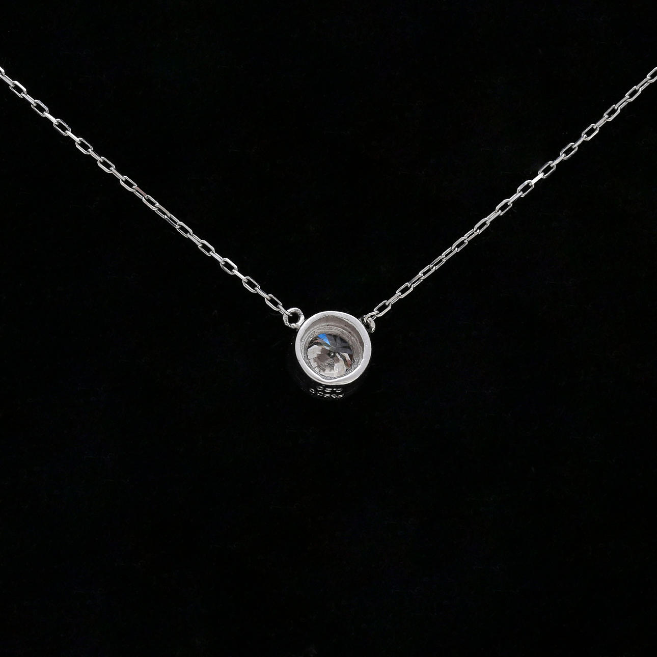 Platino y diamante talla brillante, 0,20 cts. Se adjunta cadena en platino de 40 cm (ajustable). 0,5 cm. 1,1 gr.