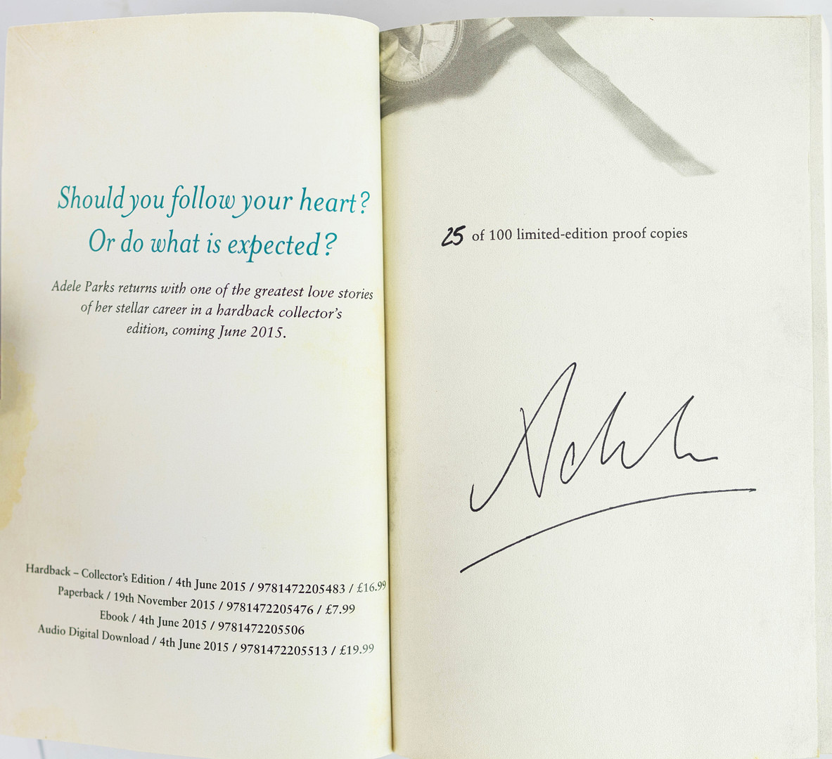 4442760. ADELE PARKS, SI TE VAS, PRUEBA DE EDICIÓN LIMITADA, FIRMADA.