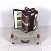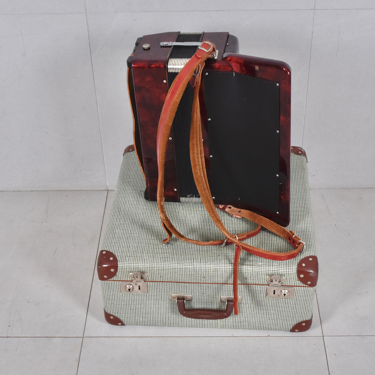 correas de cuero rojas, viene con maleta, esta altura 49 cm, longitud 52 cm, profundidad 23 cm.