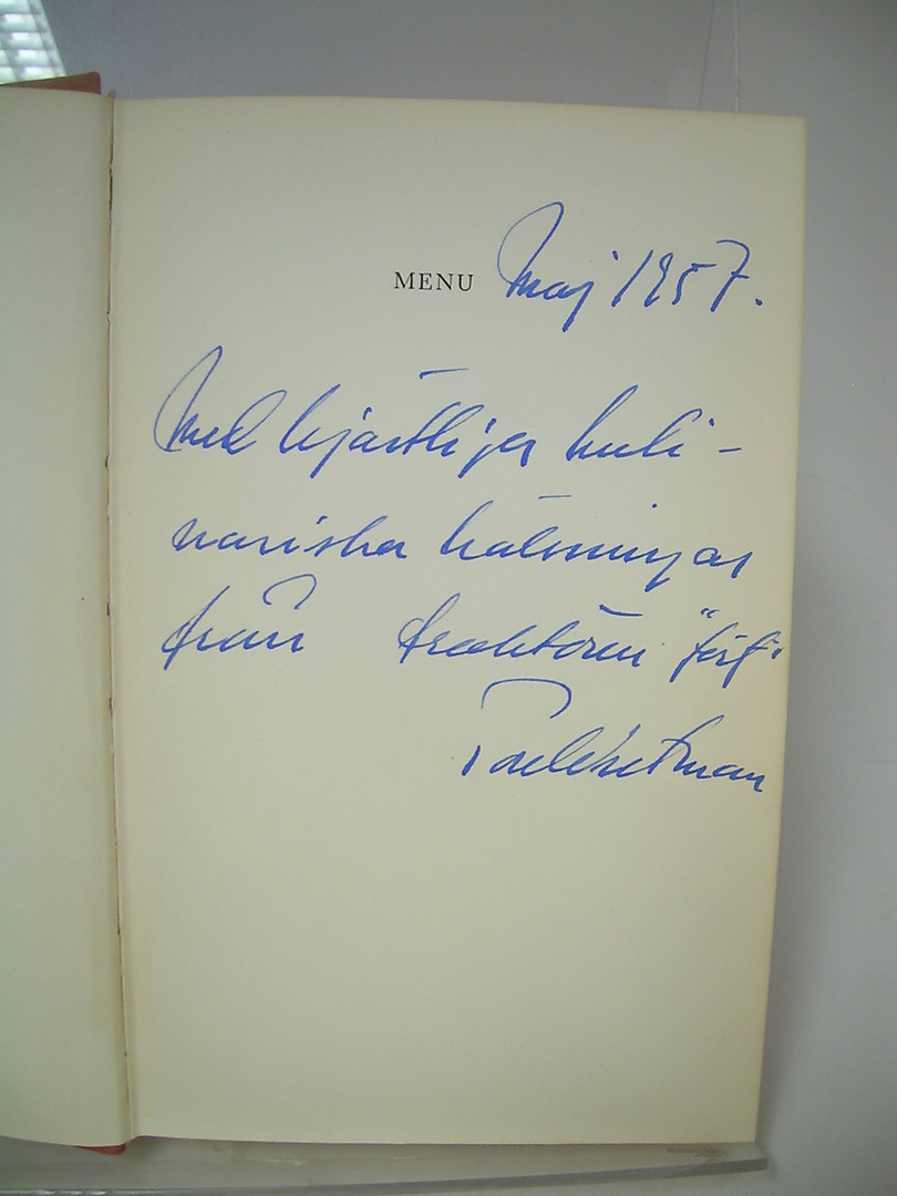 445158. TORE WRETMAN. Menú. 1956. con dedicatoria de TW.
