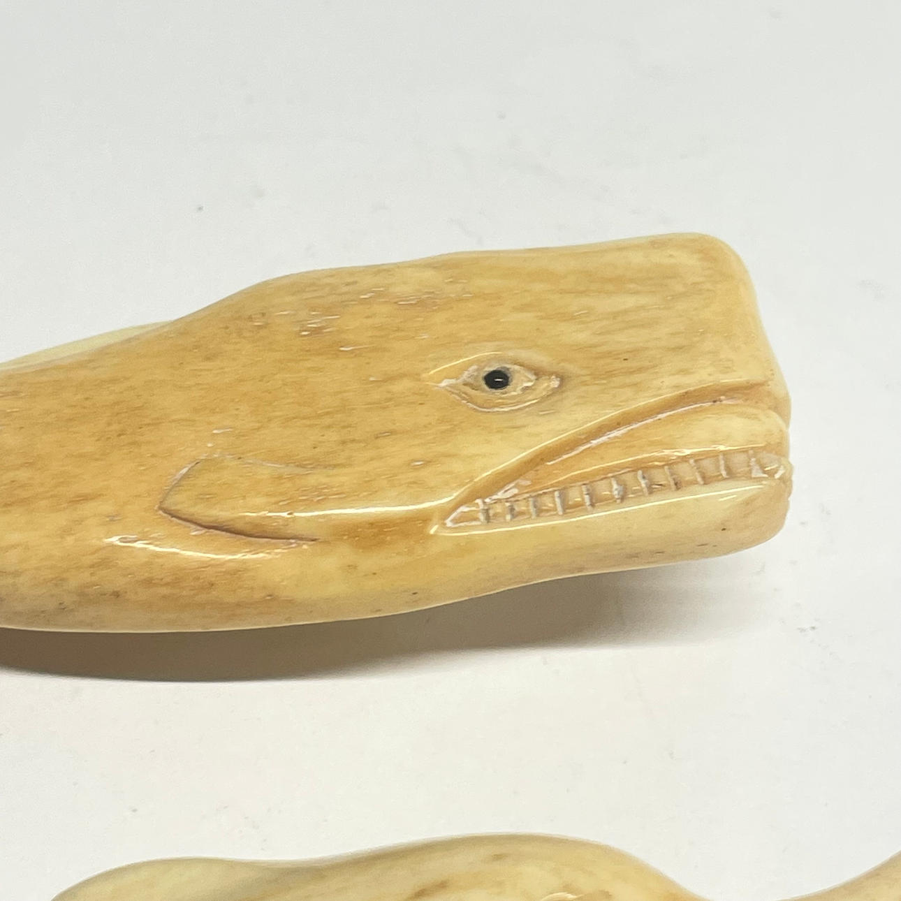 Tres interesantes objetos de hueso tallado, los más grandes son de 8,5 cm.