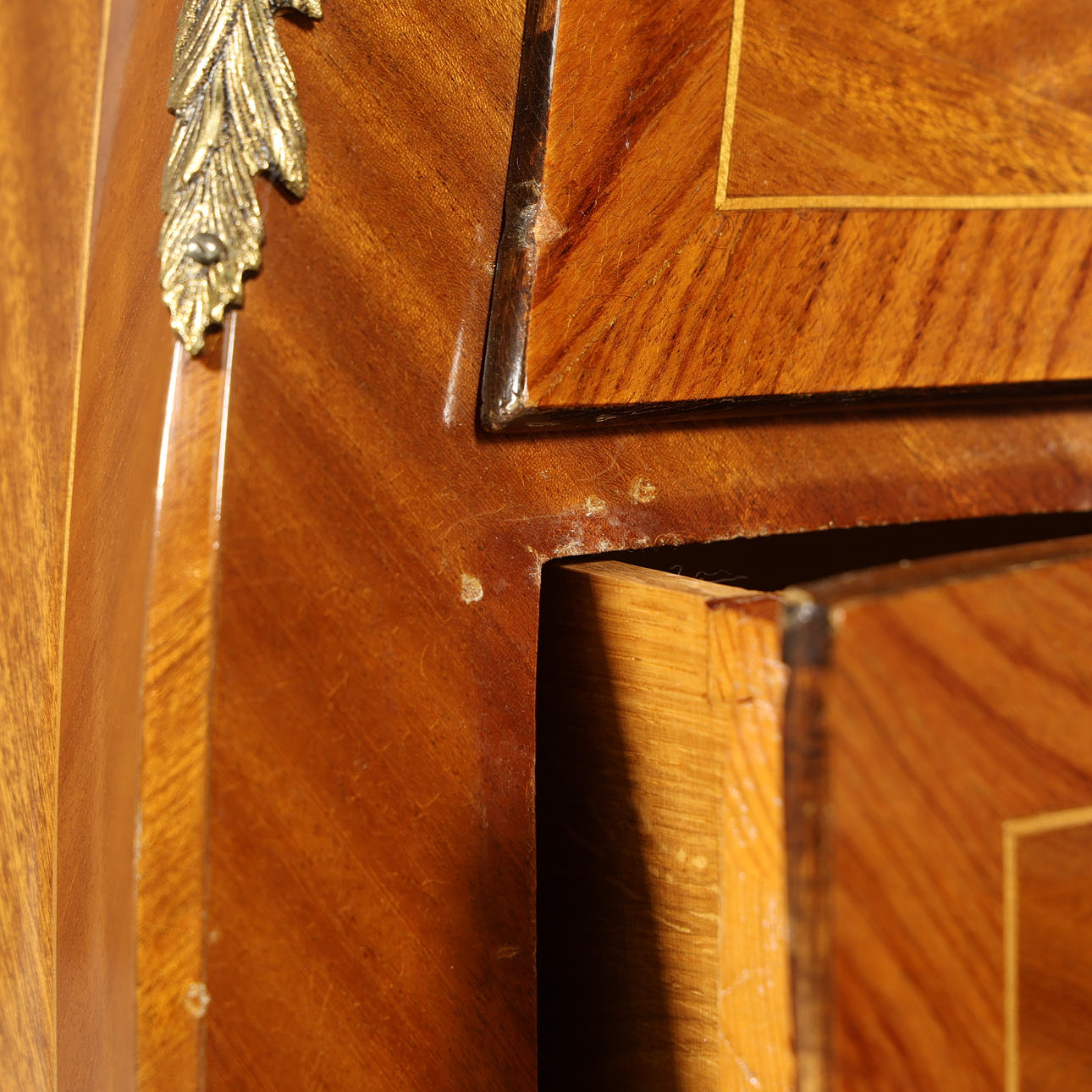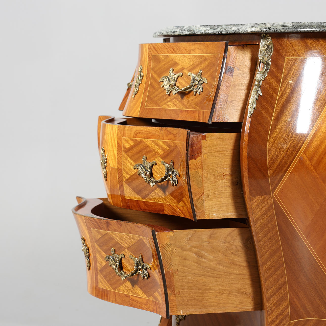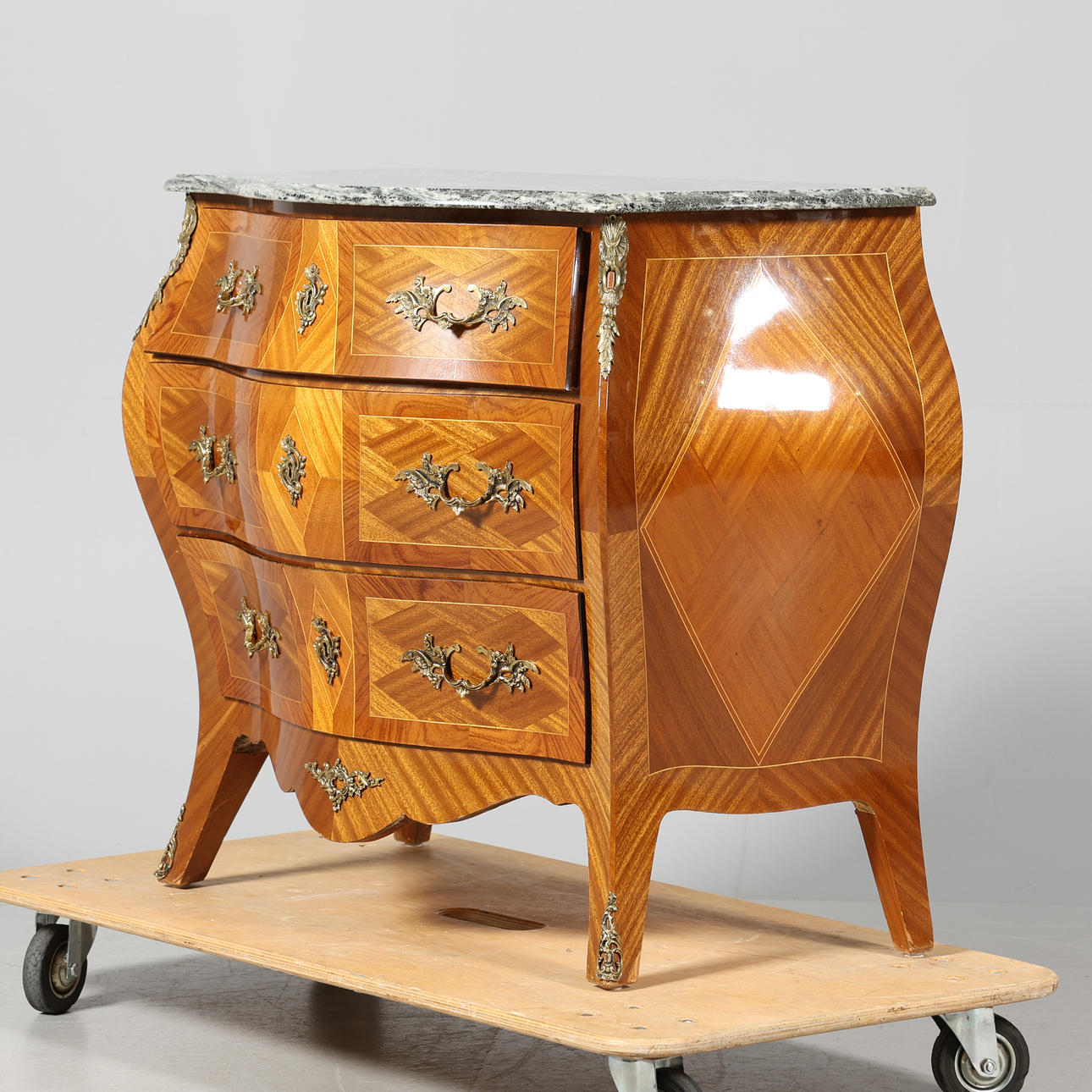 Còmoda de cajones con tapa de piedra, de estilo rococó.