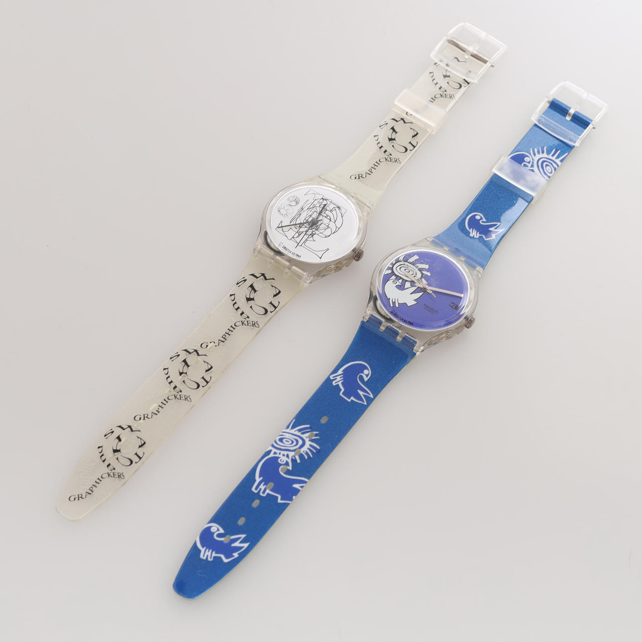 Un juego de 2 relojes de pulsera, Swatch.