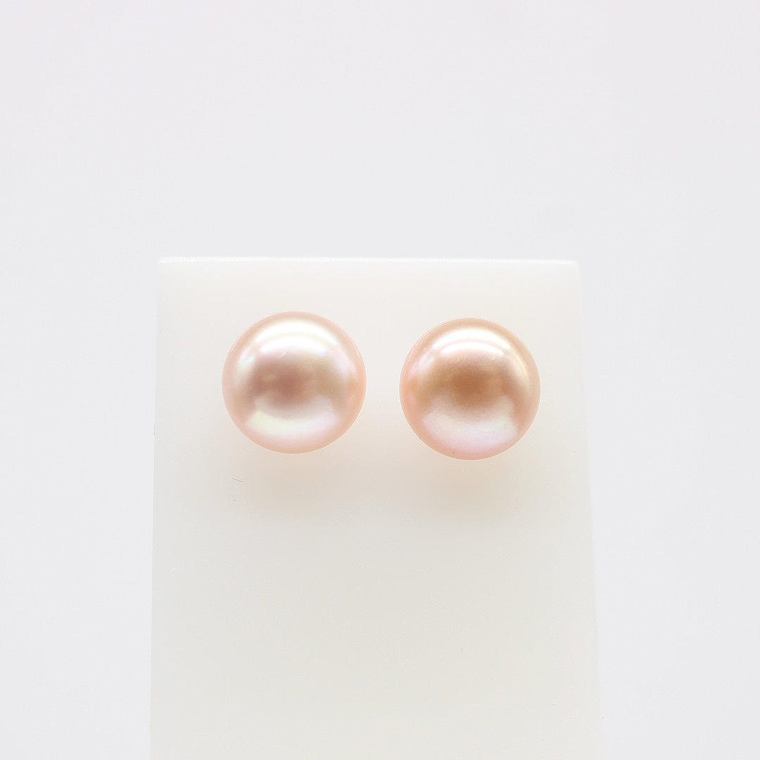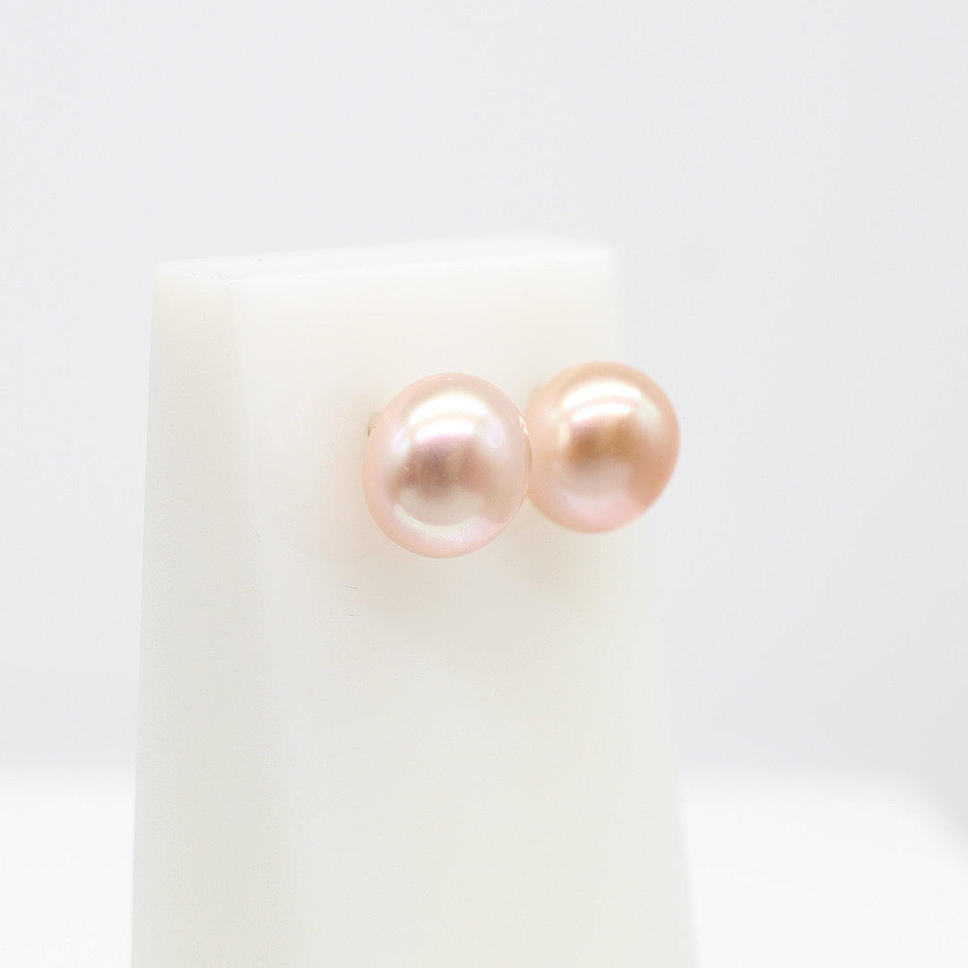Un par de pendientes de oro amarillo de 9 quilates engastados con perlas cultivadas rosas redondas.
