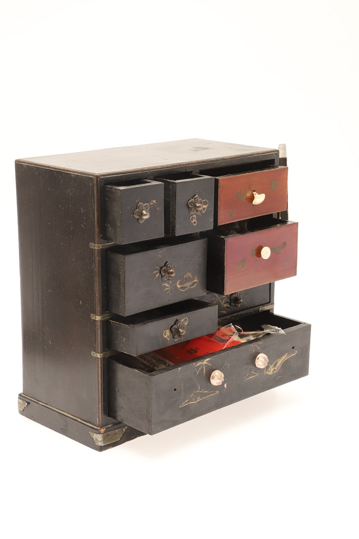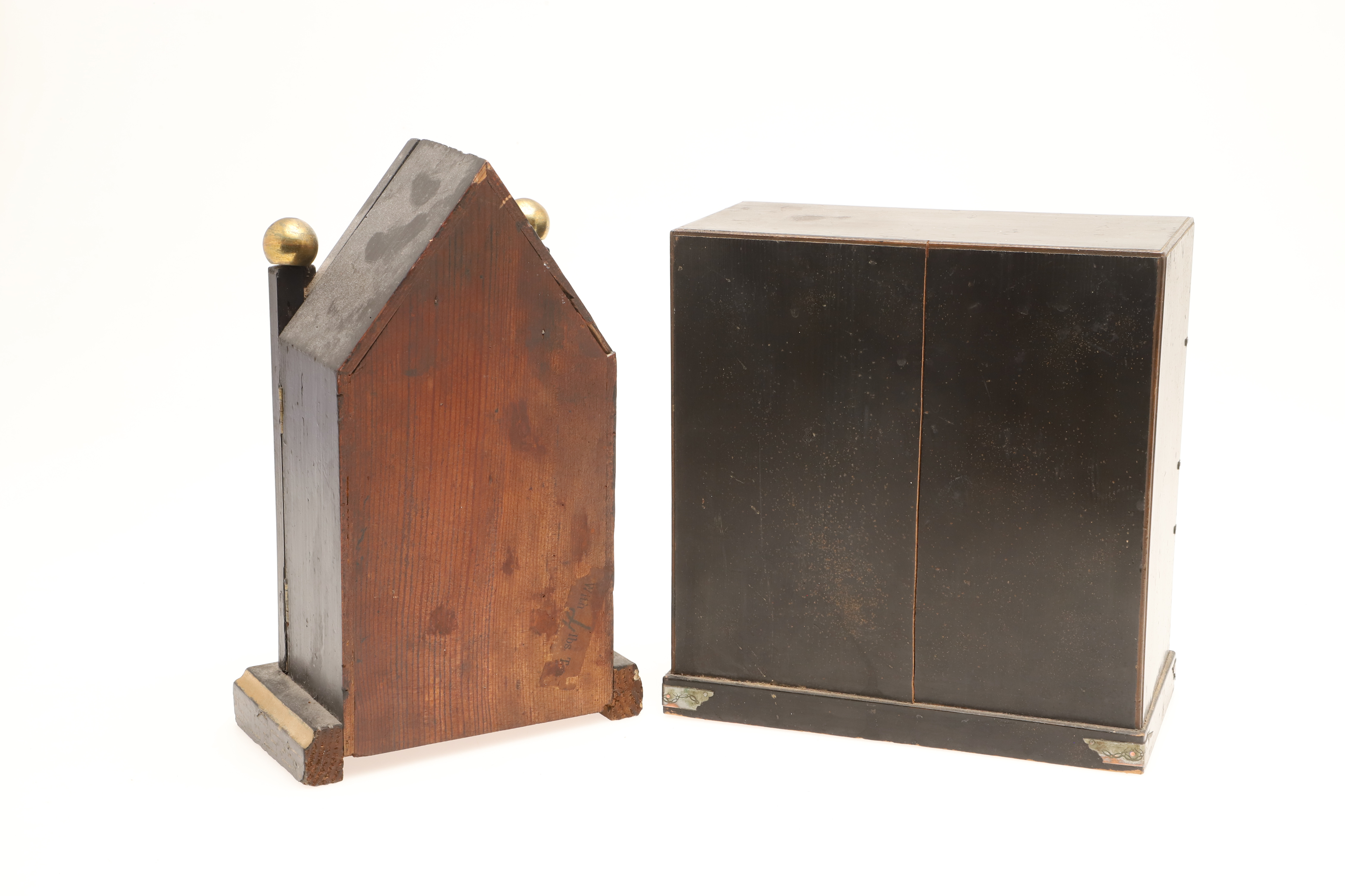 4499632. ARMARIO DE MESA JAPONÉS LACADO Y RELOJ DE SOBREMESA PEQUEÑO.