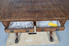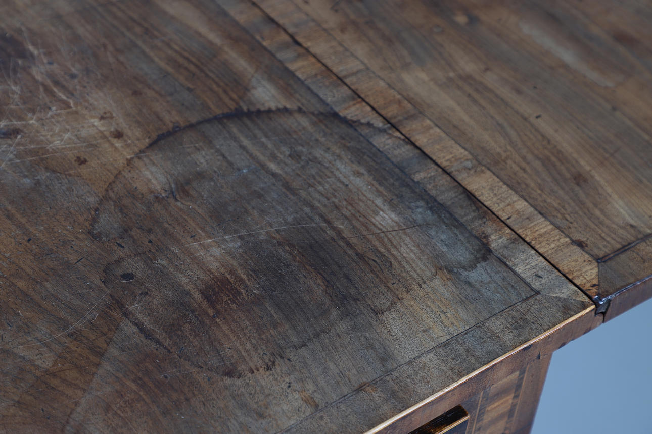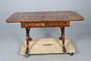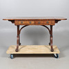Con solapas abatibles y cajones con friso con mecanismos de cierre y tiradores de latón, todos levantados sobre soportes con forma de pata de león, 90 cm (142 cm extendidos) x 64 cm x 75 cm de alto.