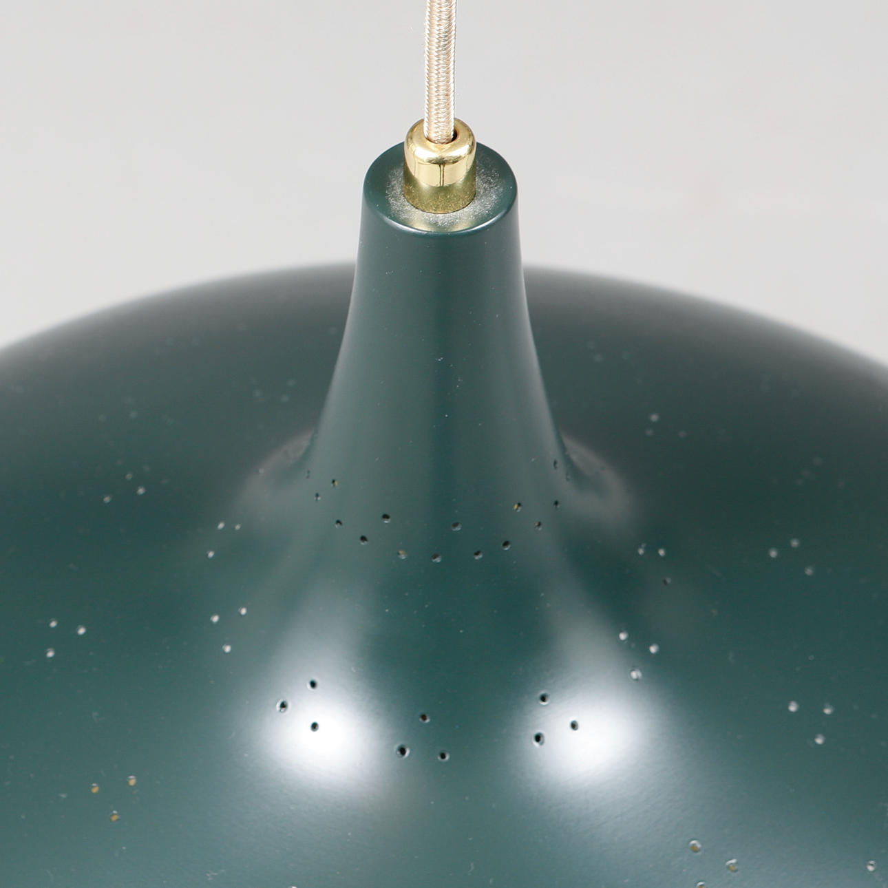 Tapa metálica. Lacado en verde con decoración en forma de patrones de agujeros. Diámetro 45, altura 24 cm.
