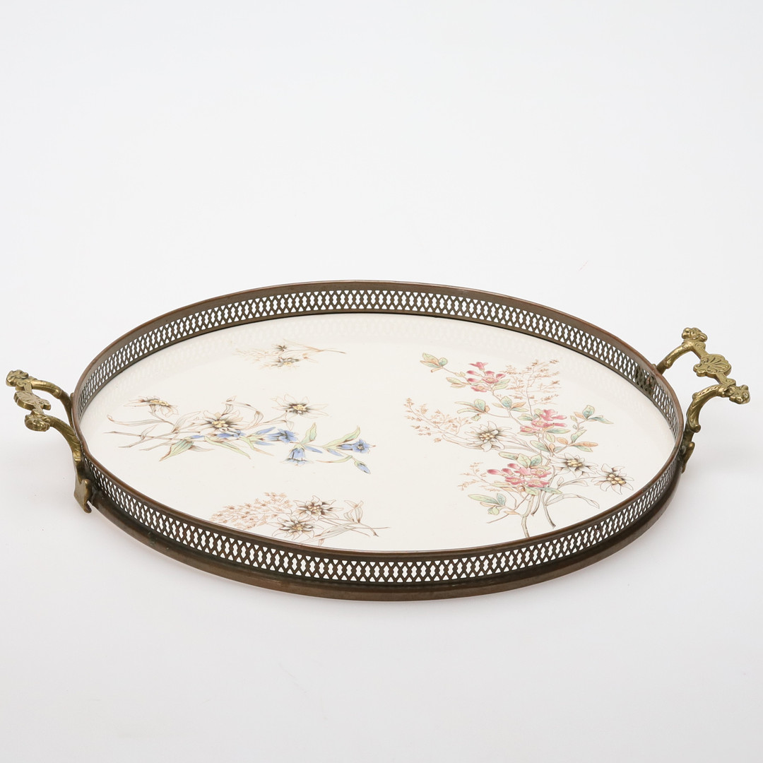 4631108. BANDEJA PARA SERVIR, PEDERNAL Y LATÓN.