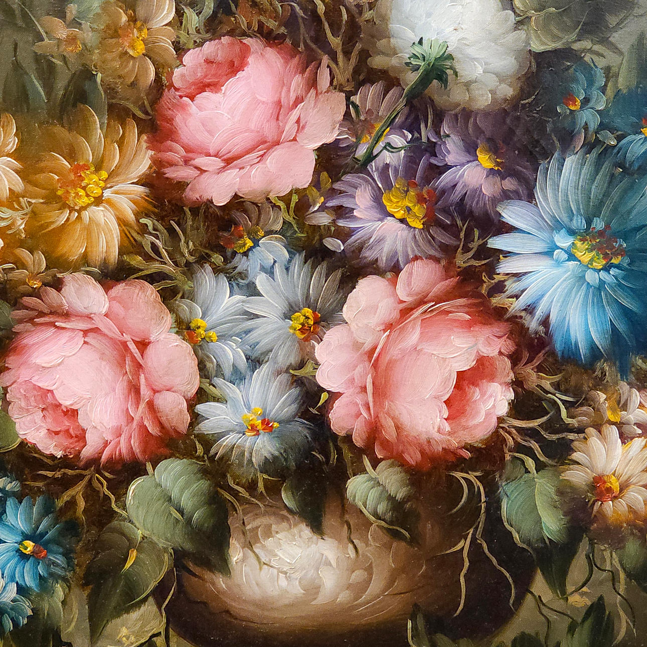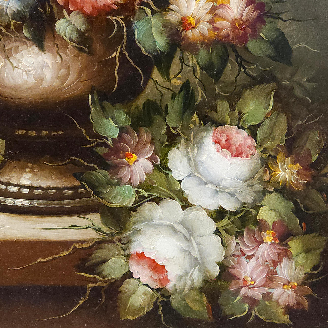 4634137. ROBERTO MICHEL. Bodegón de flores, óleo sobre lienzo.