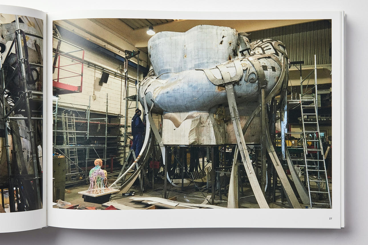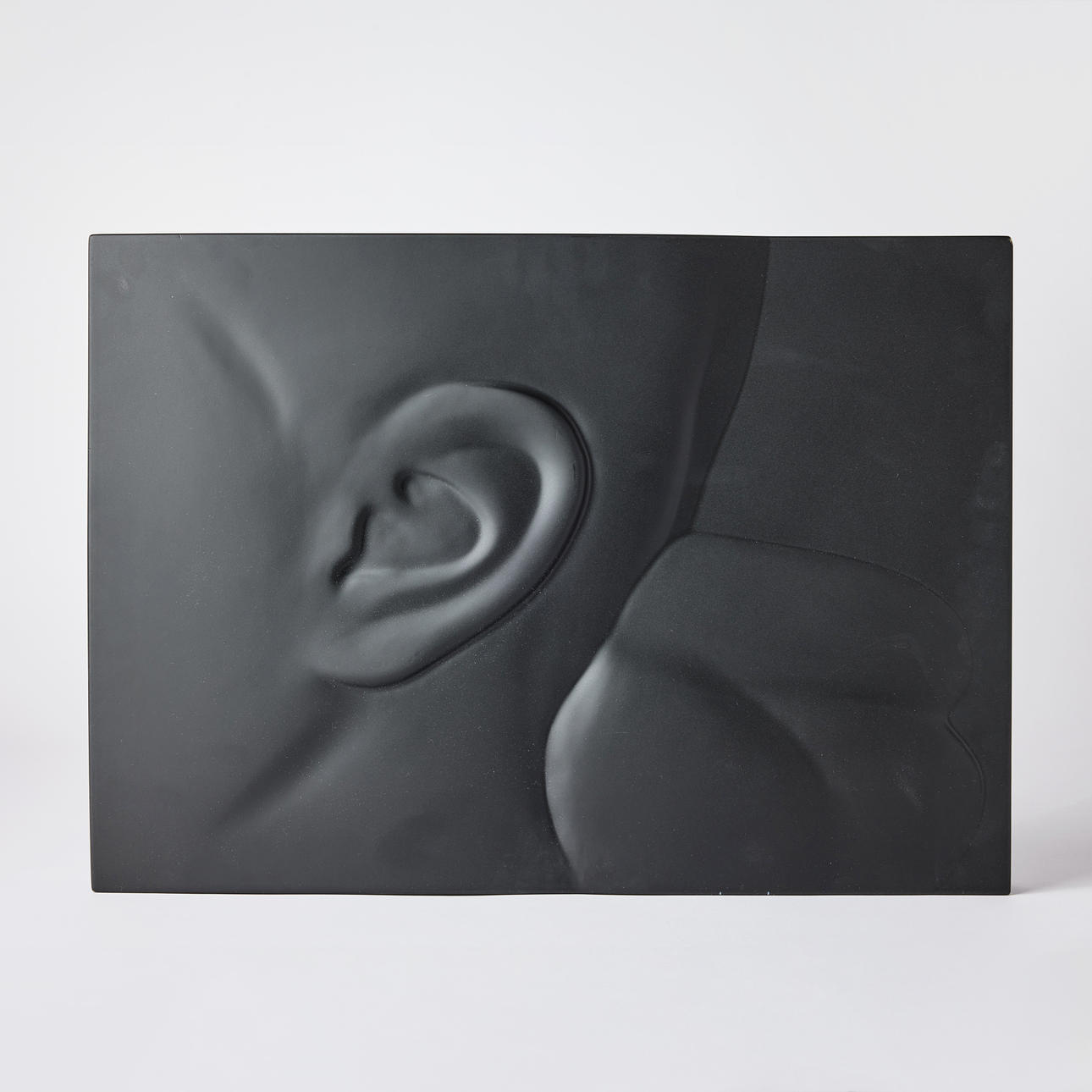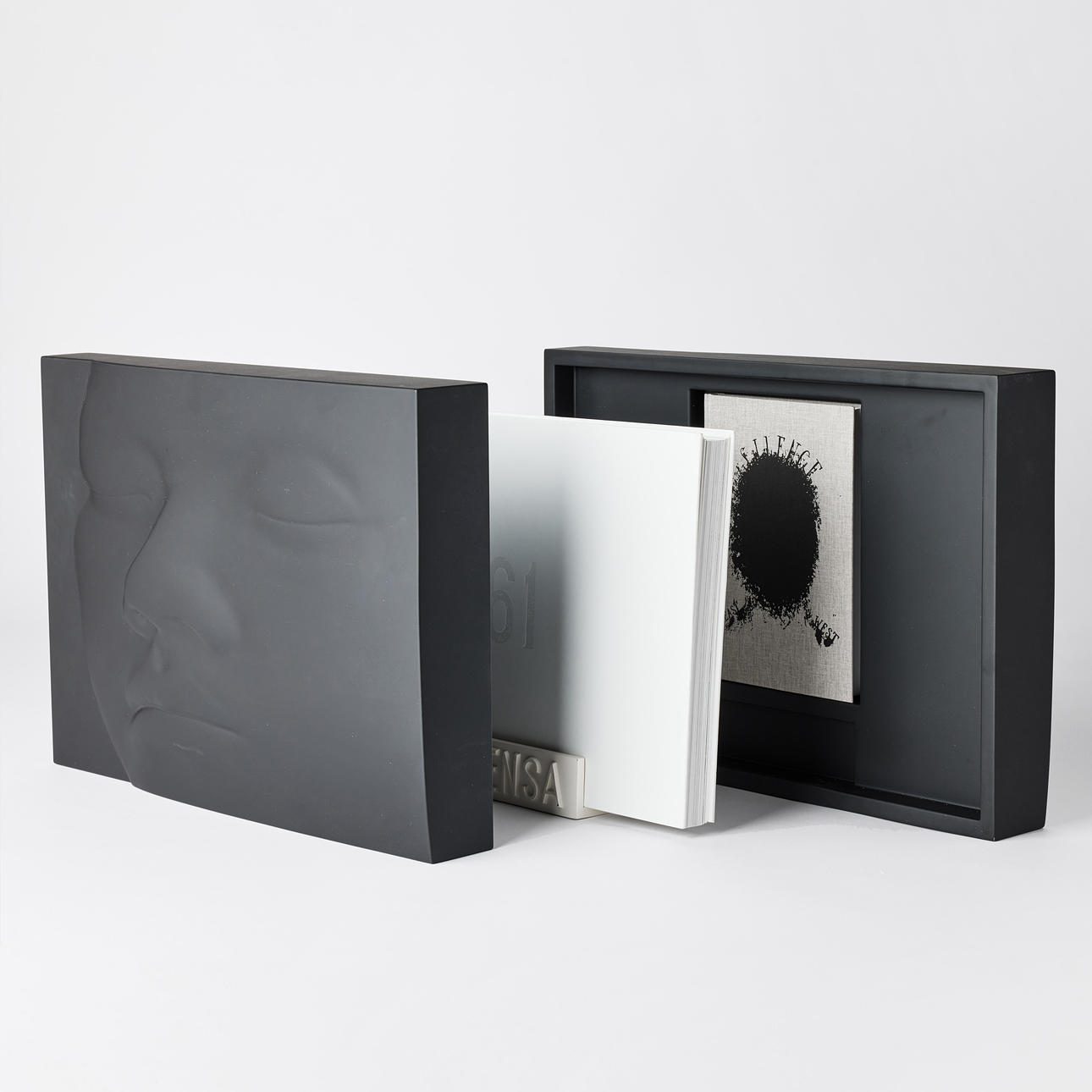 Escultura en forma de caja (37 x 50 x 14 cm), de poliuretano moldeado, incluye libro de arte y libro de estudio. Base para un libro con el nombre del artista en jesmonite. Publicado por