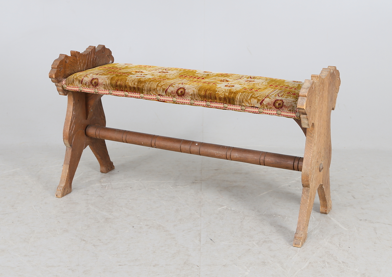 467123. BANCO, madera y textil, finales del siglo XIX.
