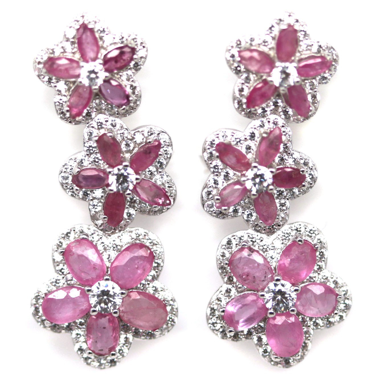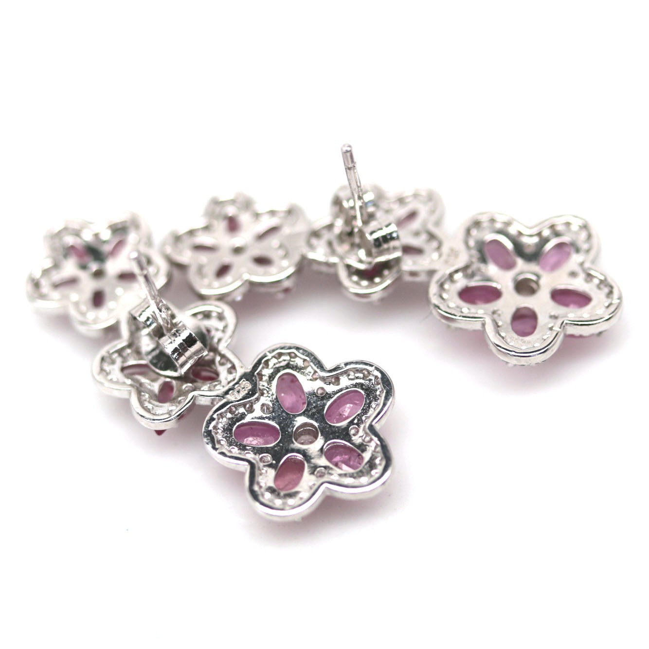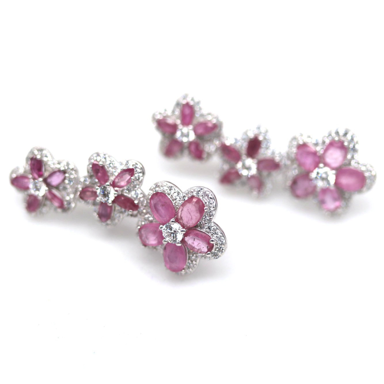 4709039. PENDIENTES DE PLATA RUBÍ EN FORMA DE FLOR.