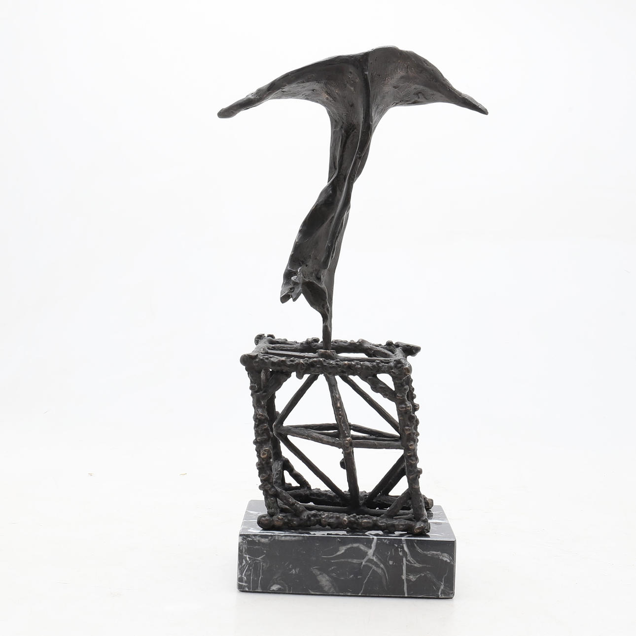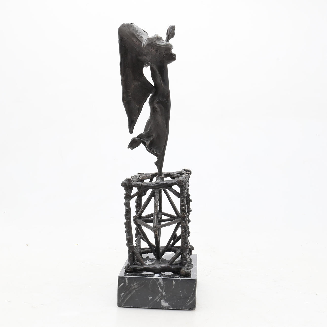 Escultura en bronce sobre peana en mármol
