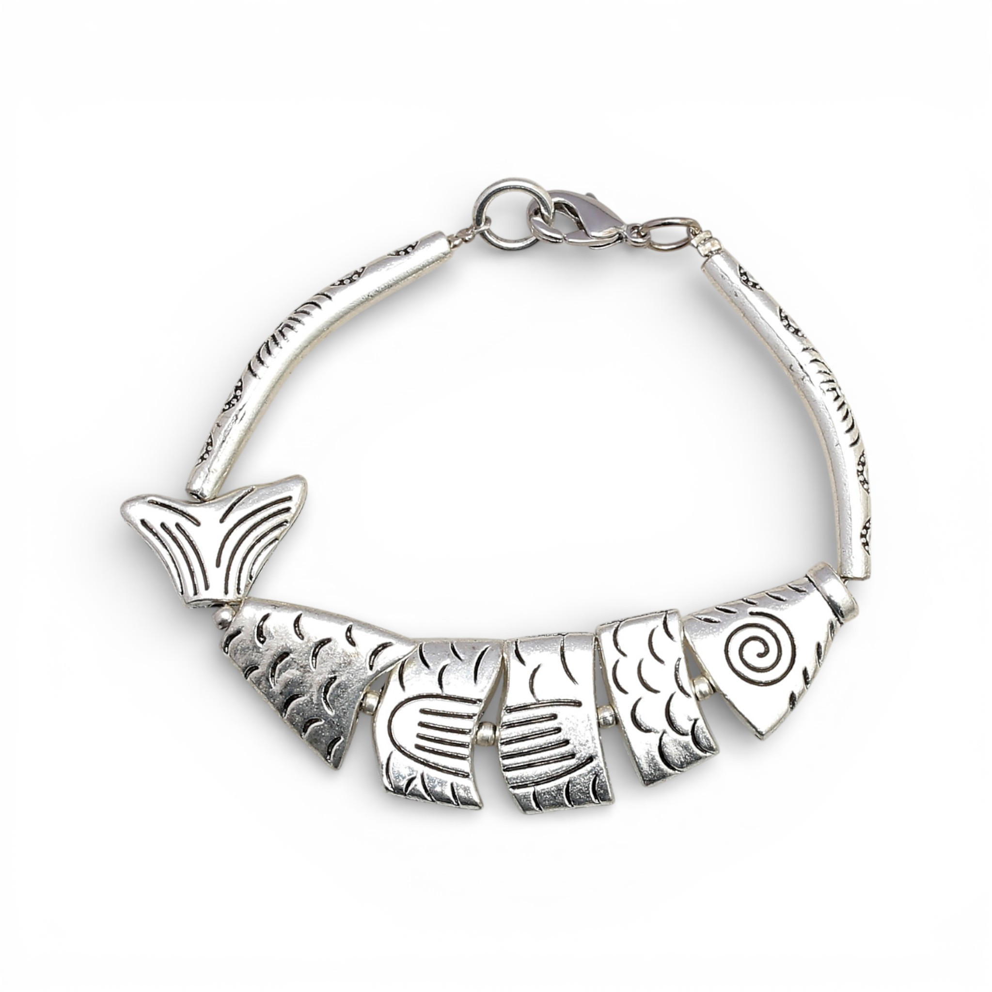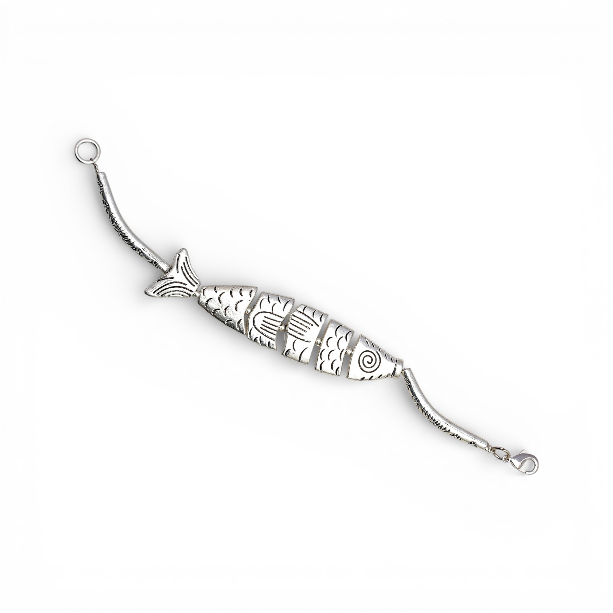 4799024. Pendientes largos y pulsera en forma de pez.