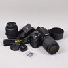 Tarjeta SD de 16 GB, 2 lentes, cargador y cuerpo de cámara.