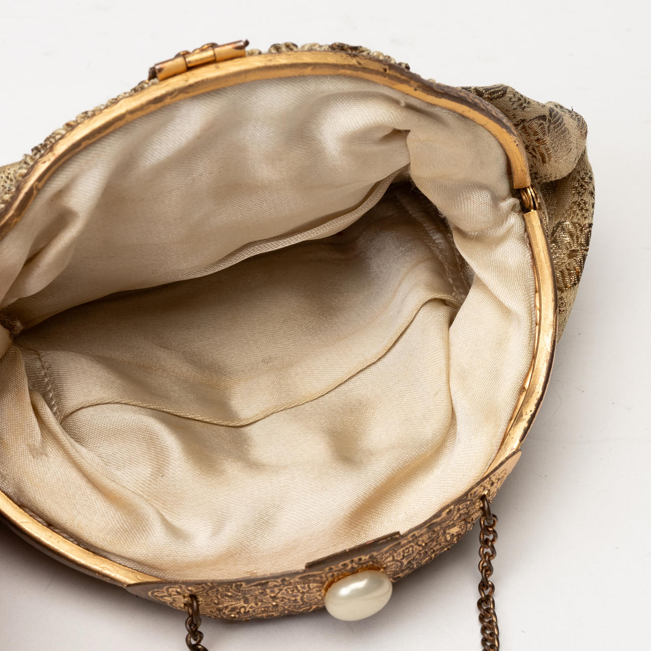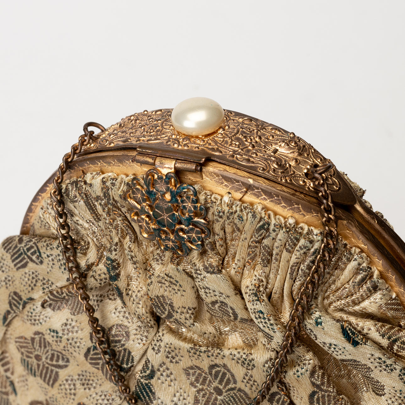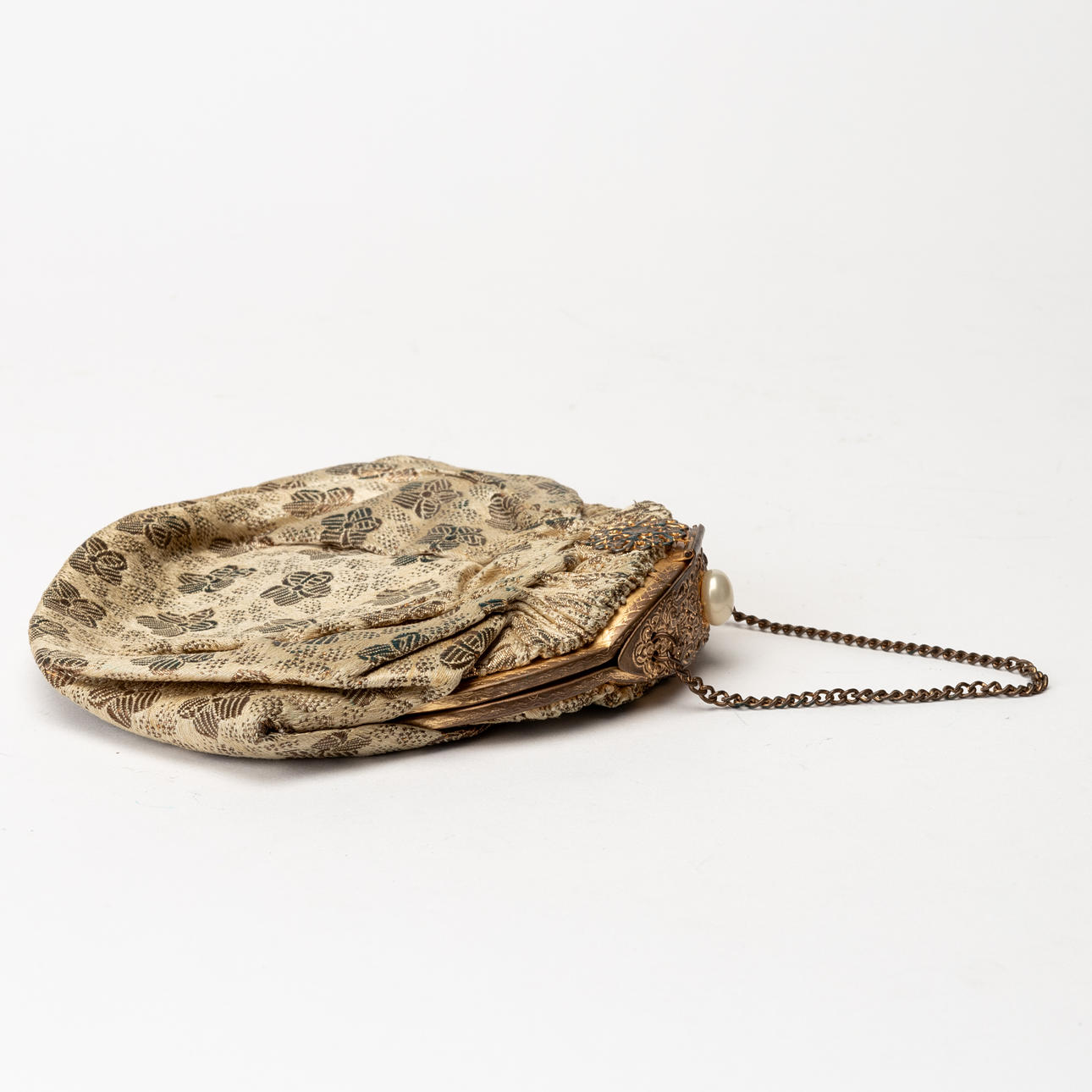 Bolsa con bordado de alambre metálico, asa de transporte en forma de cadena, longitud aprox. 15 y altura 12 cm.