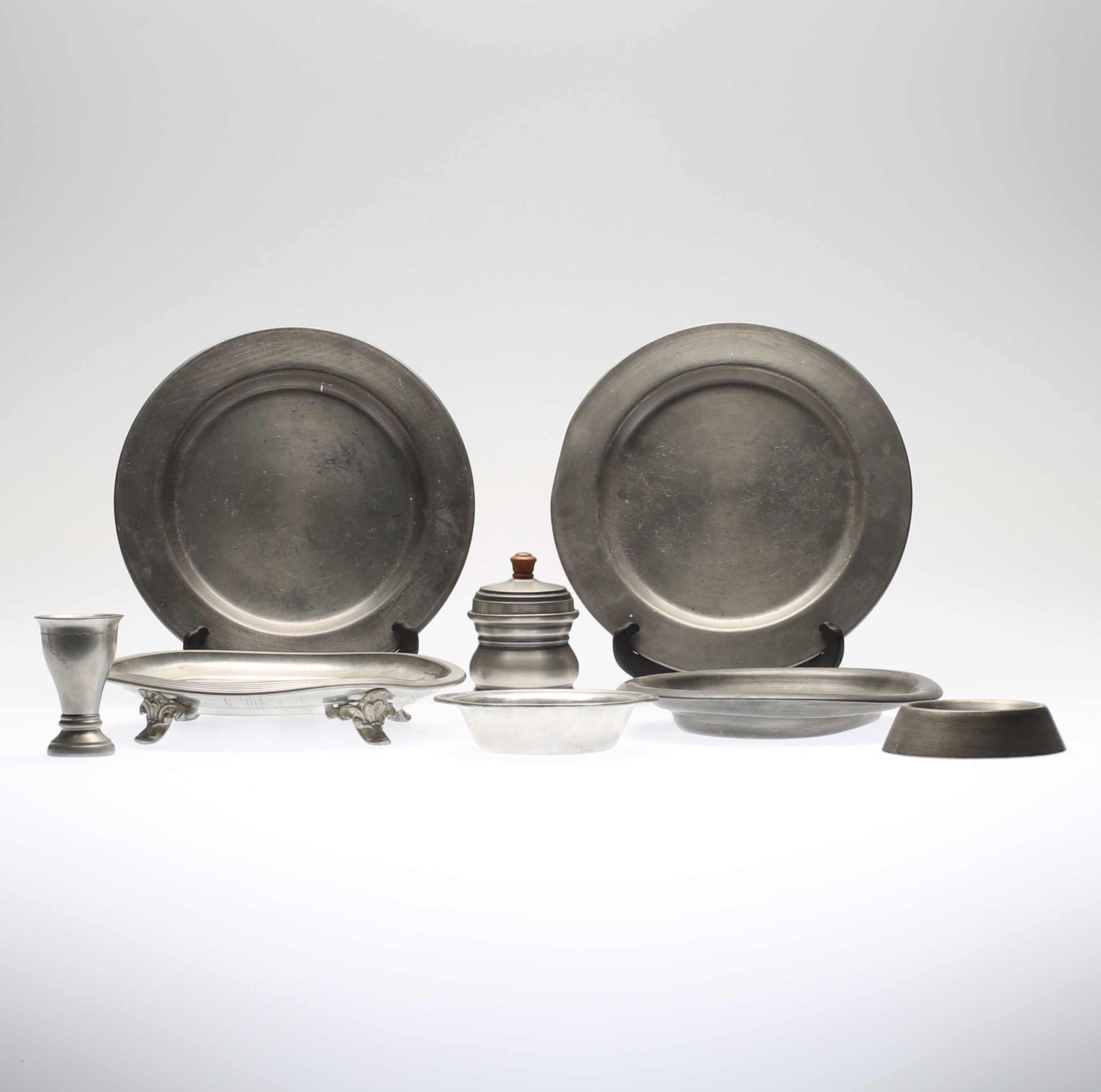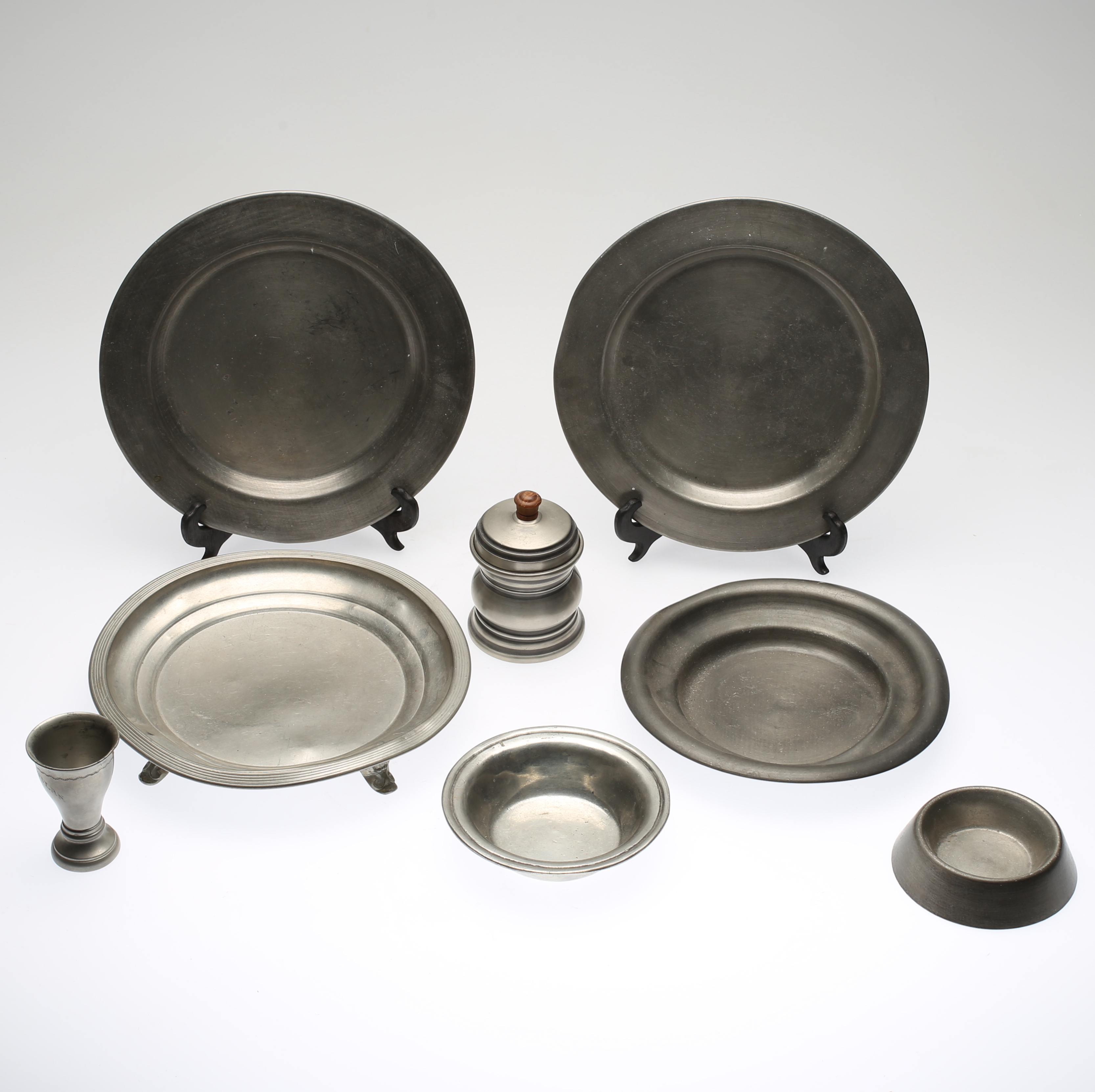 481248. OBJETOS DE ESTAÑO, 8 partes, 1900.