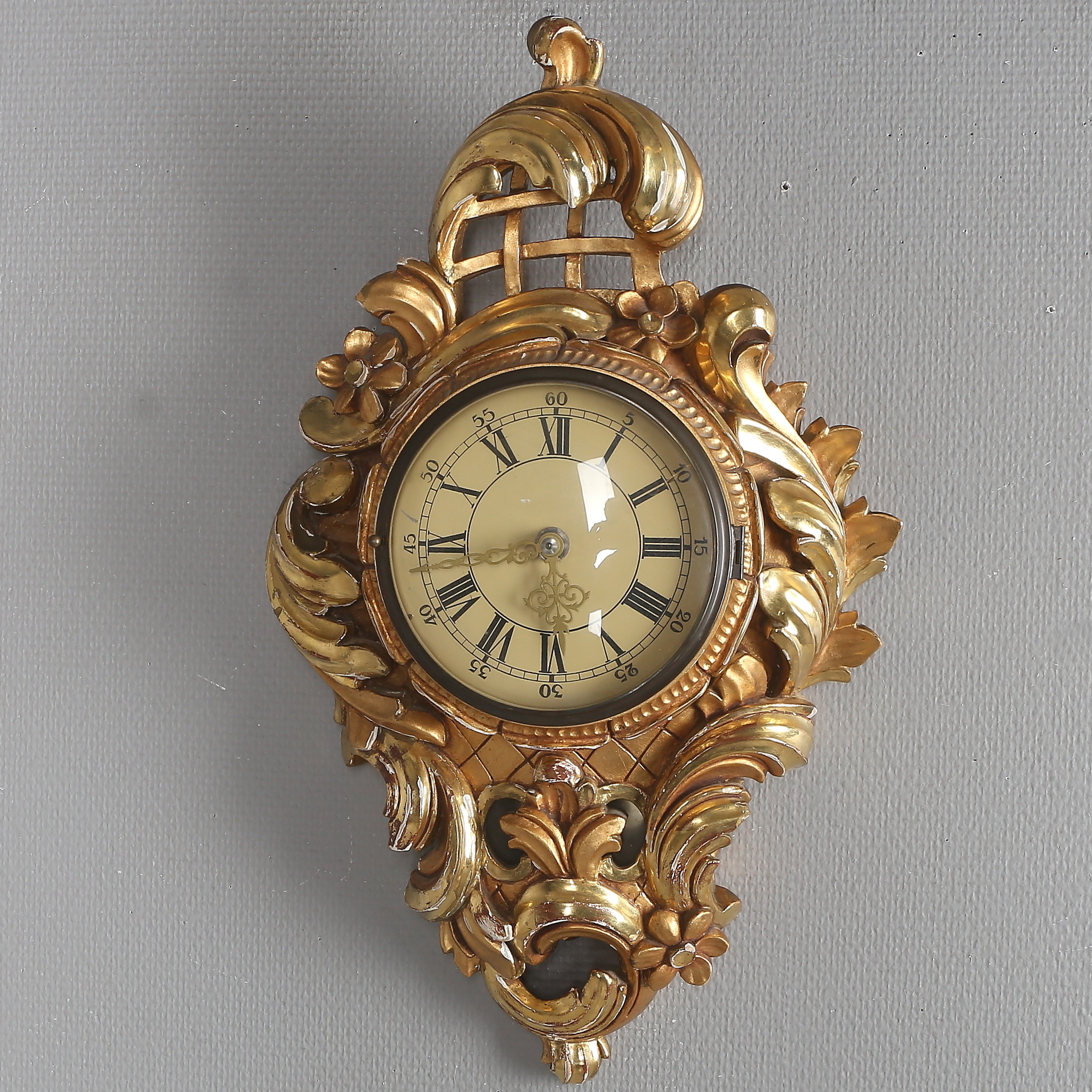 482331. RELOJ DE PARED, péndulo de oro, a pilas, siglo XX.