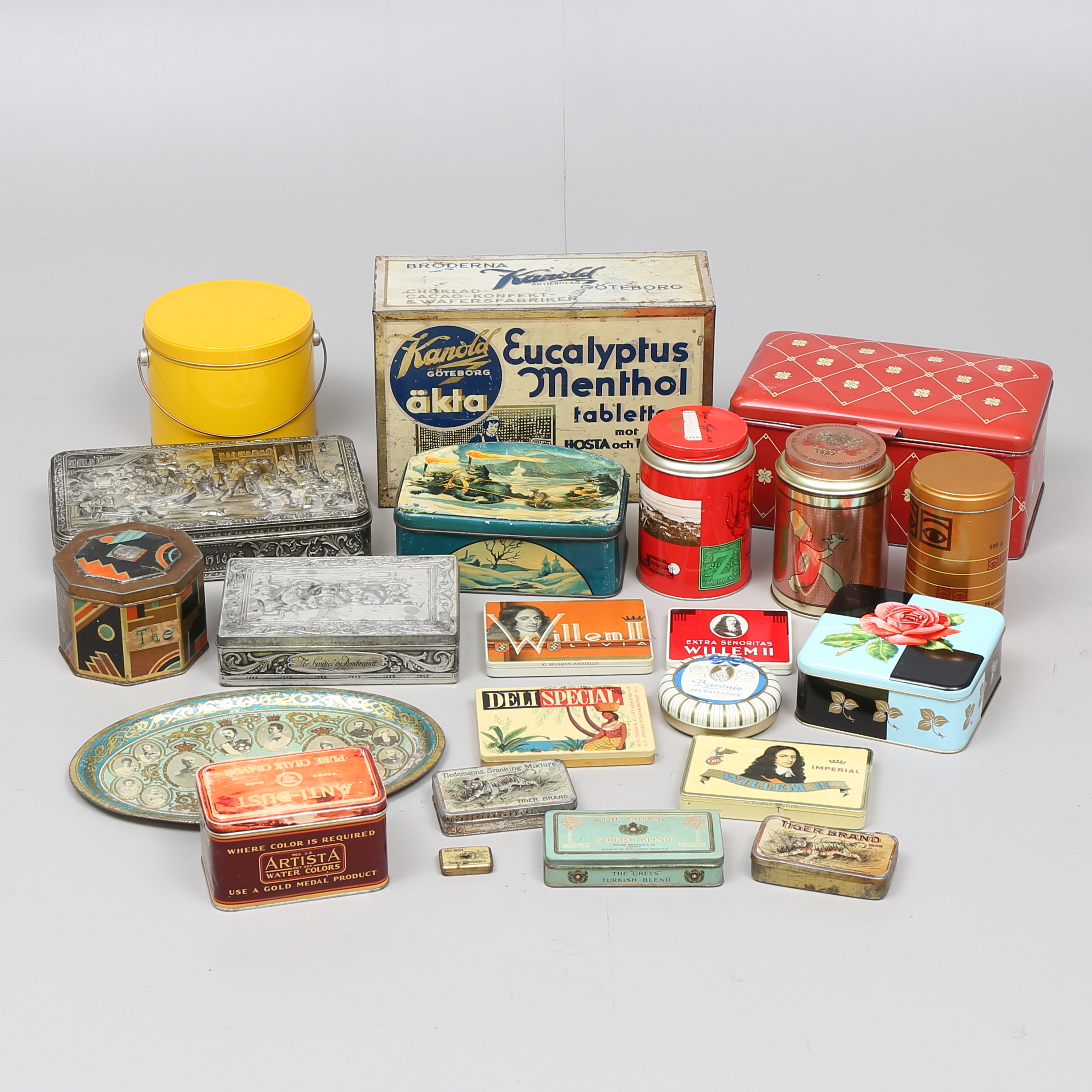483577. BOTES, 21 uds y BANDEJA, lata, 1900.
