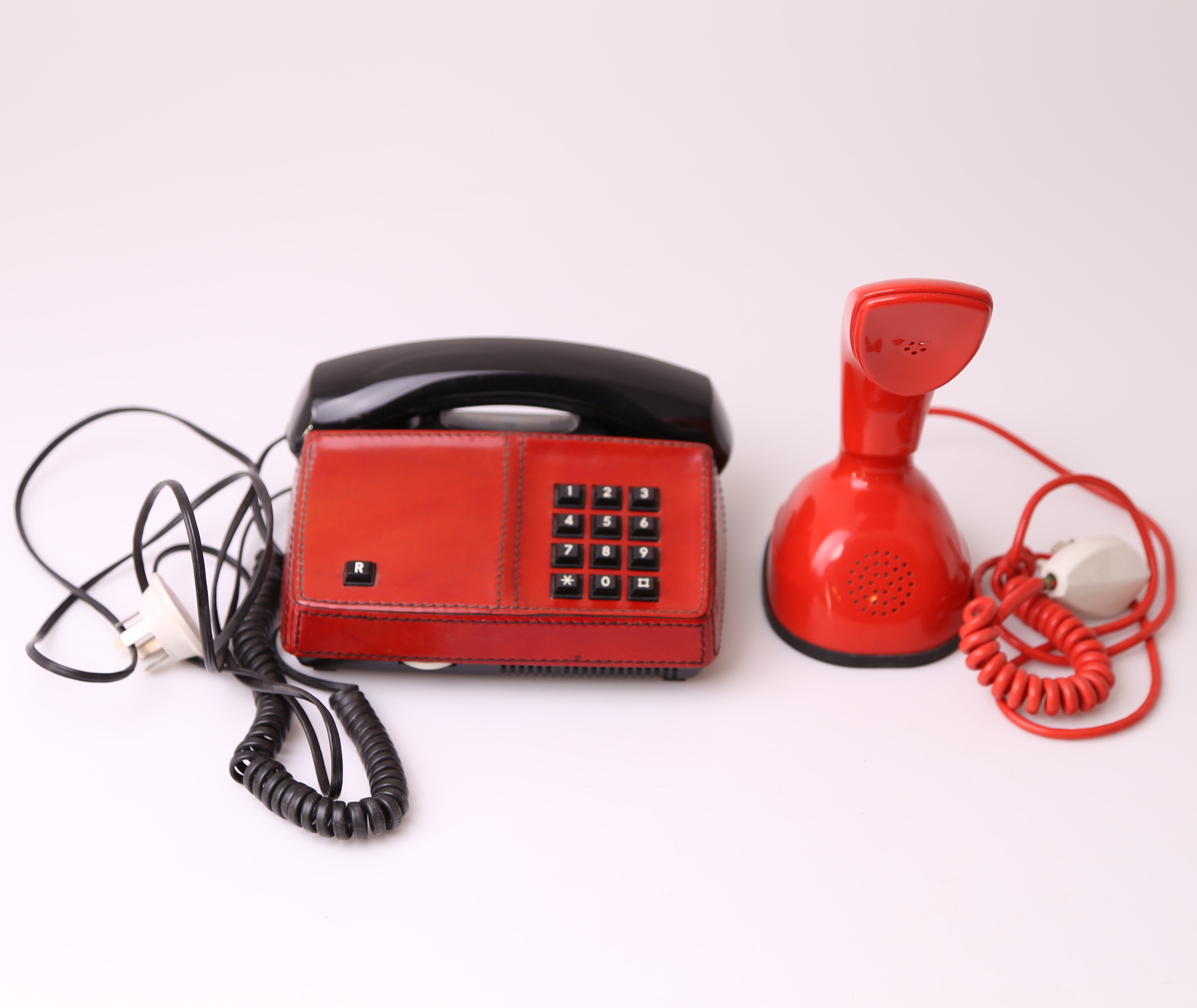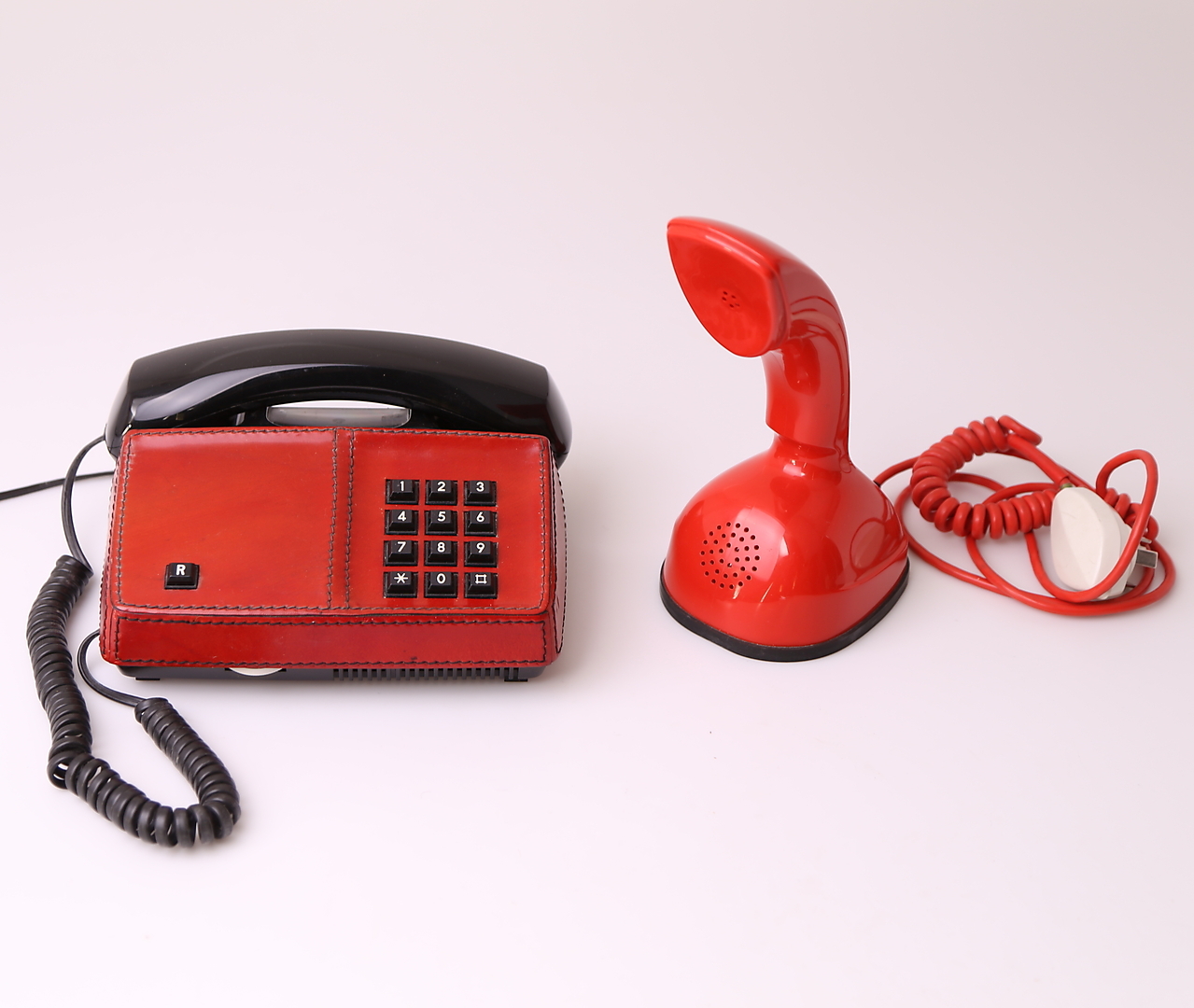 486509. TELÉFONOS DE MESA, 2 piezas, rojo, década de 1900.