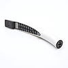 Aluminio cepillado mate y plástico negro.