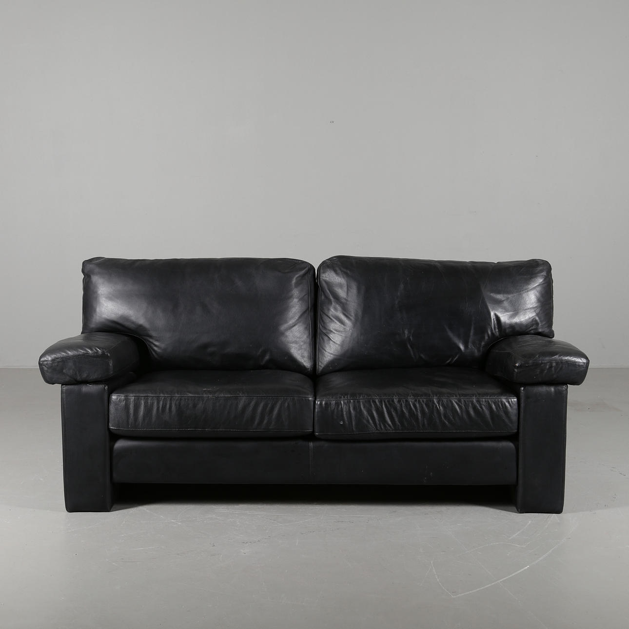 486713. SOFÁ dos plazas en cuero negro años 2000.