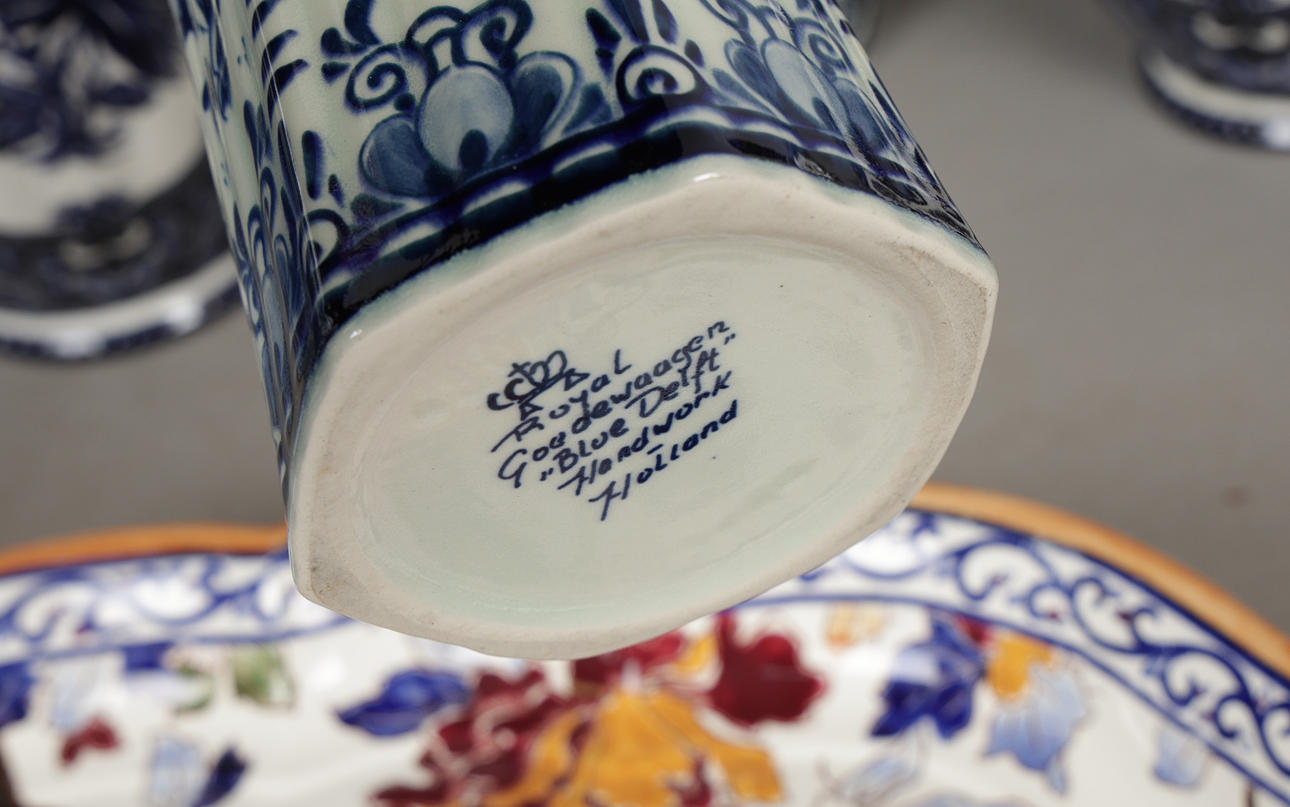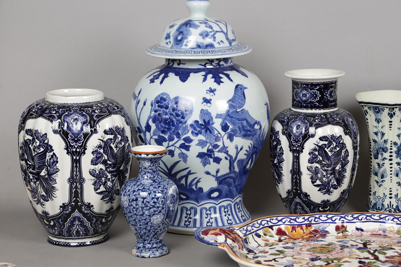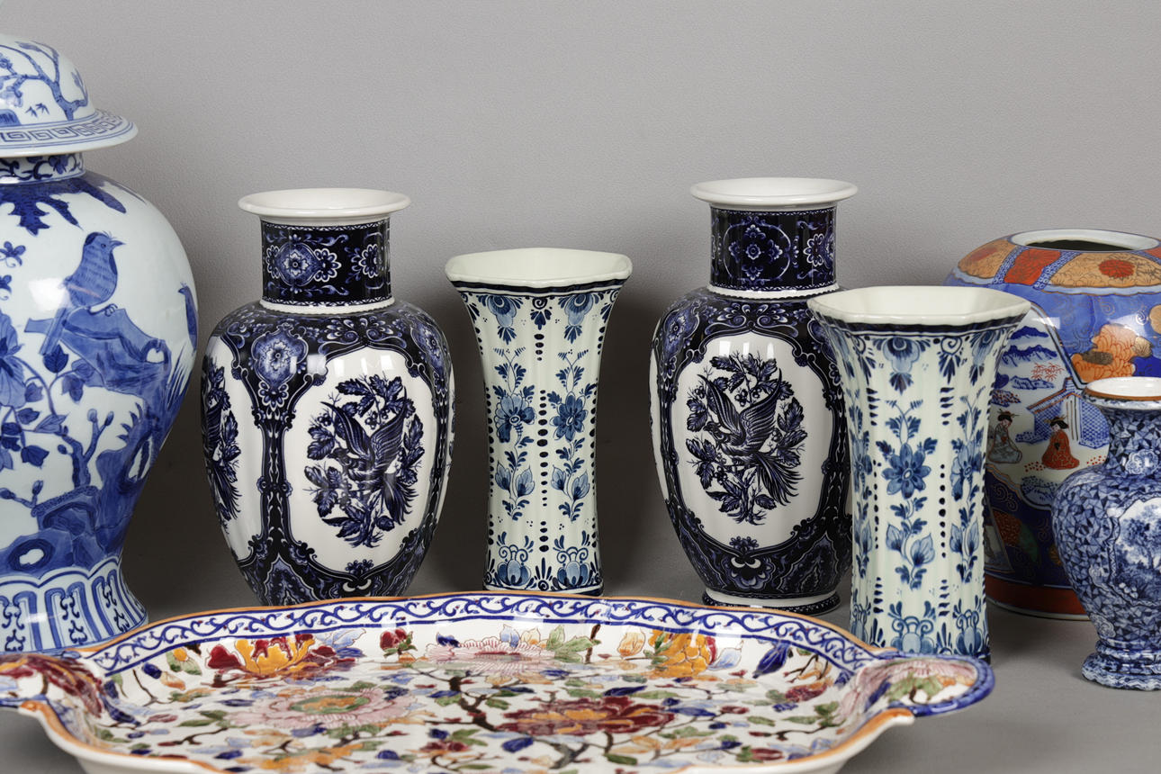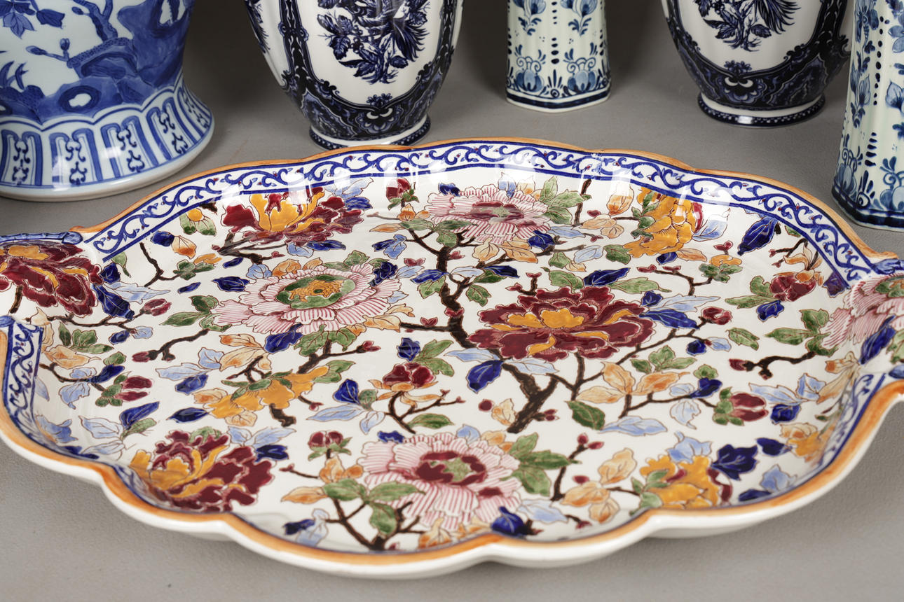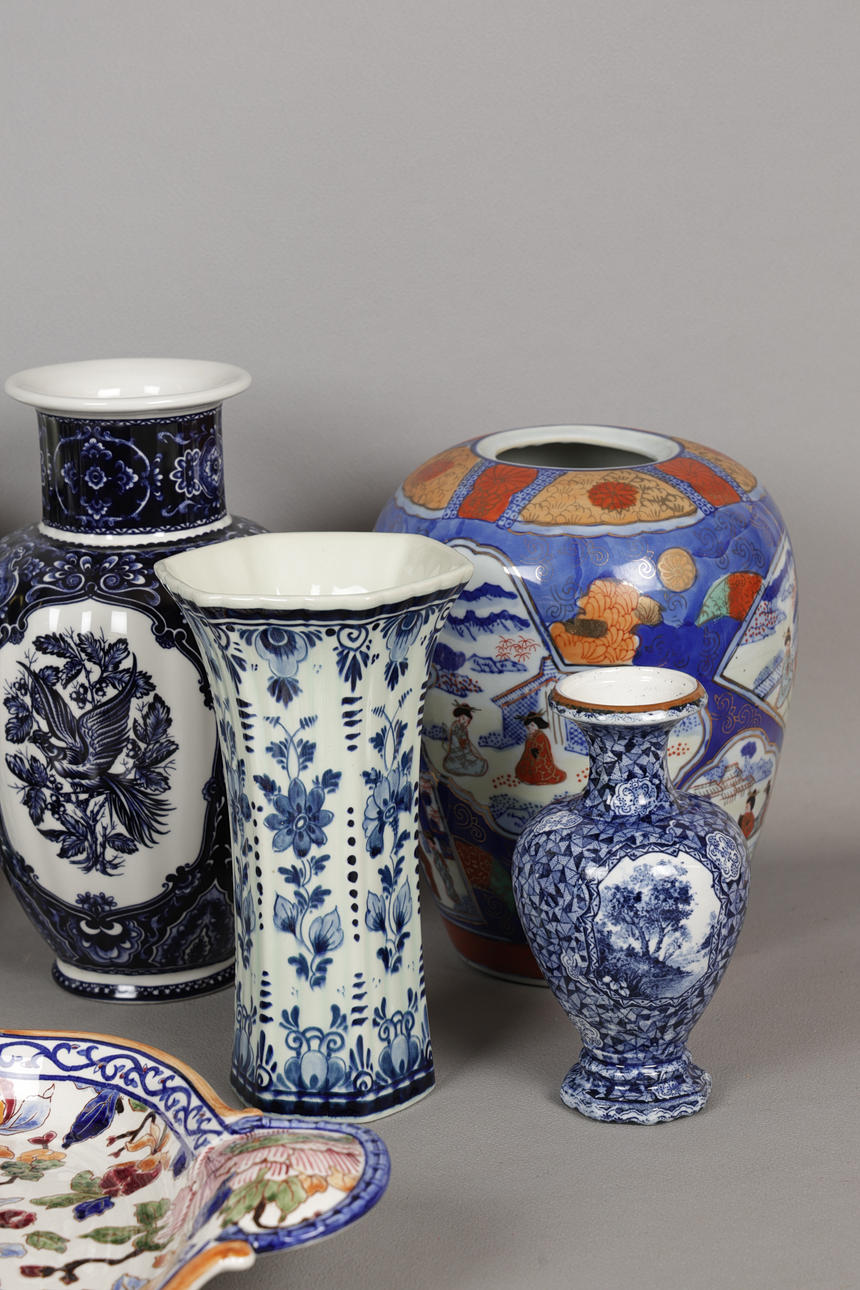 Incluye una bandeja para servir cerámica Gien, de 53 cm de ancho, un jarrón grande y moderno chino azul y blanco, de 40 cm de alto, un jarrón estilo Imari, varios jarrones azules y blancos, etc. (cantidad).