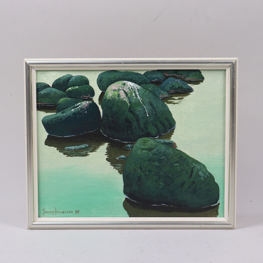 4915292. JOHNNY ANDERSSON. óleo sobre lienzo, piedras.