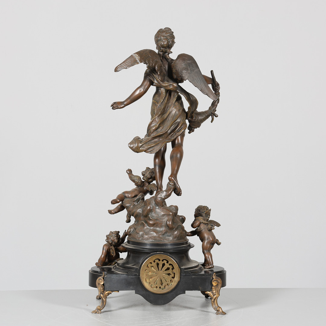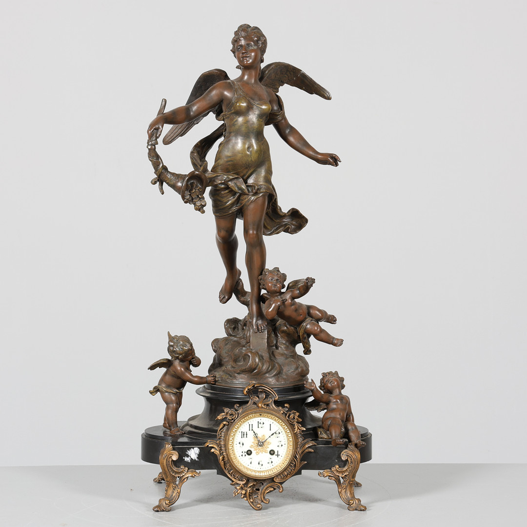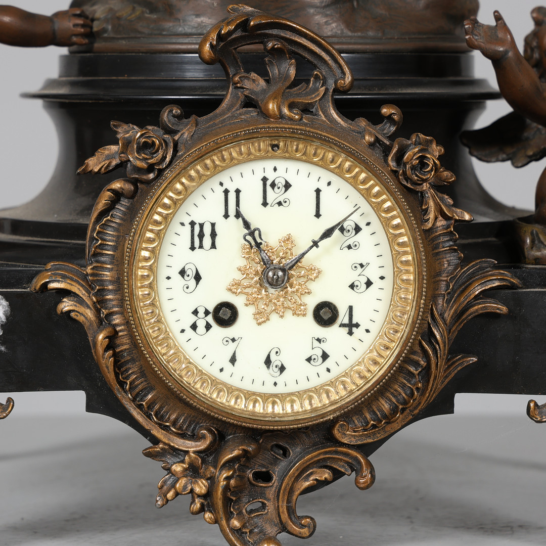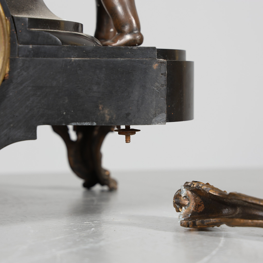 4927154. Reloj de mesa de estilo rococó, de metal y madera.
