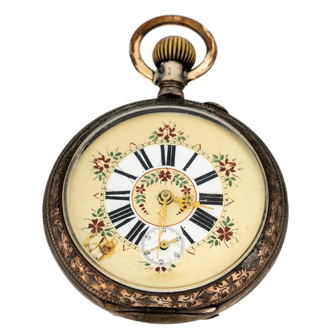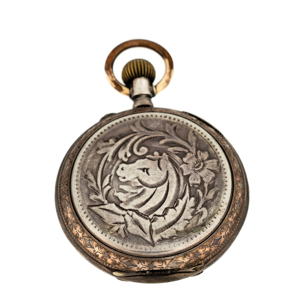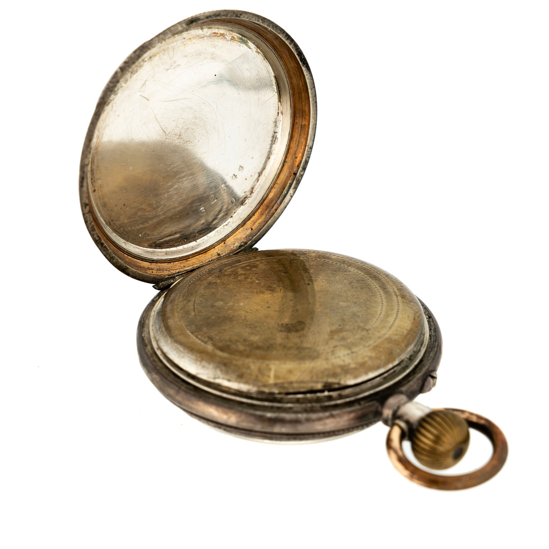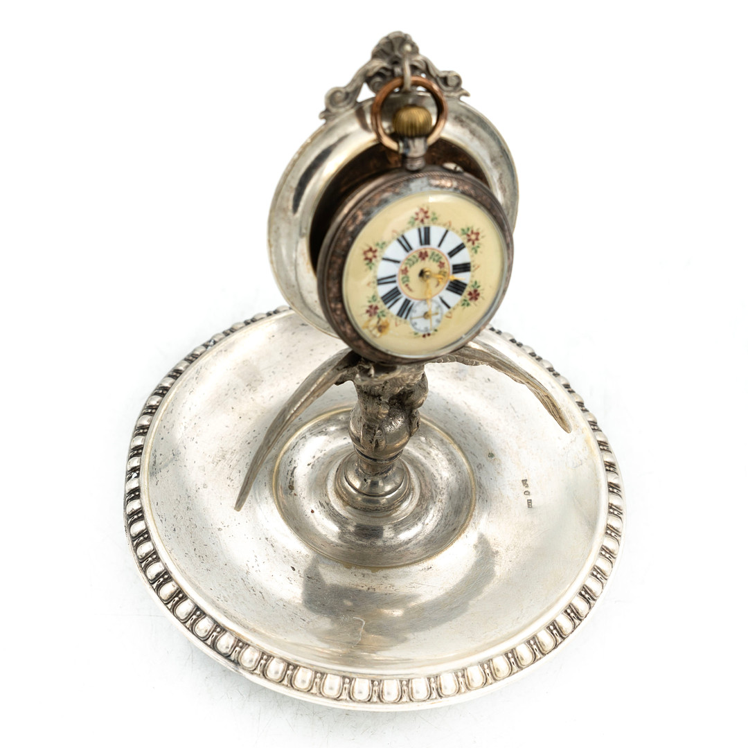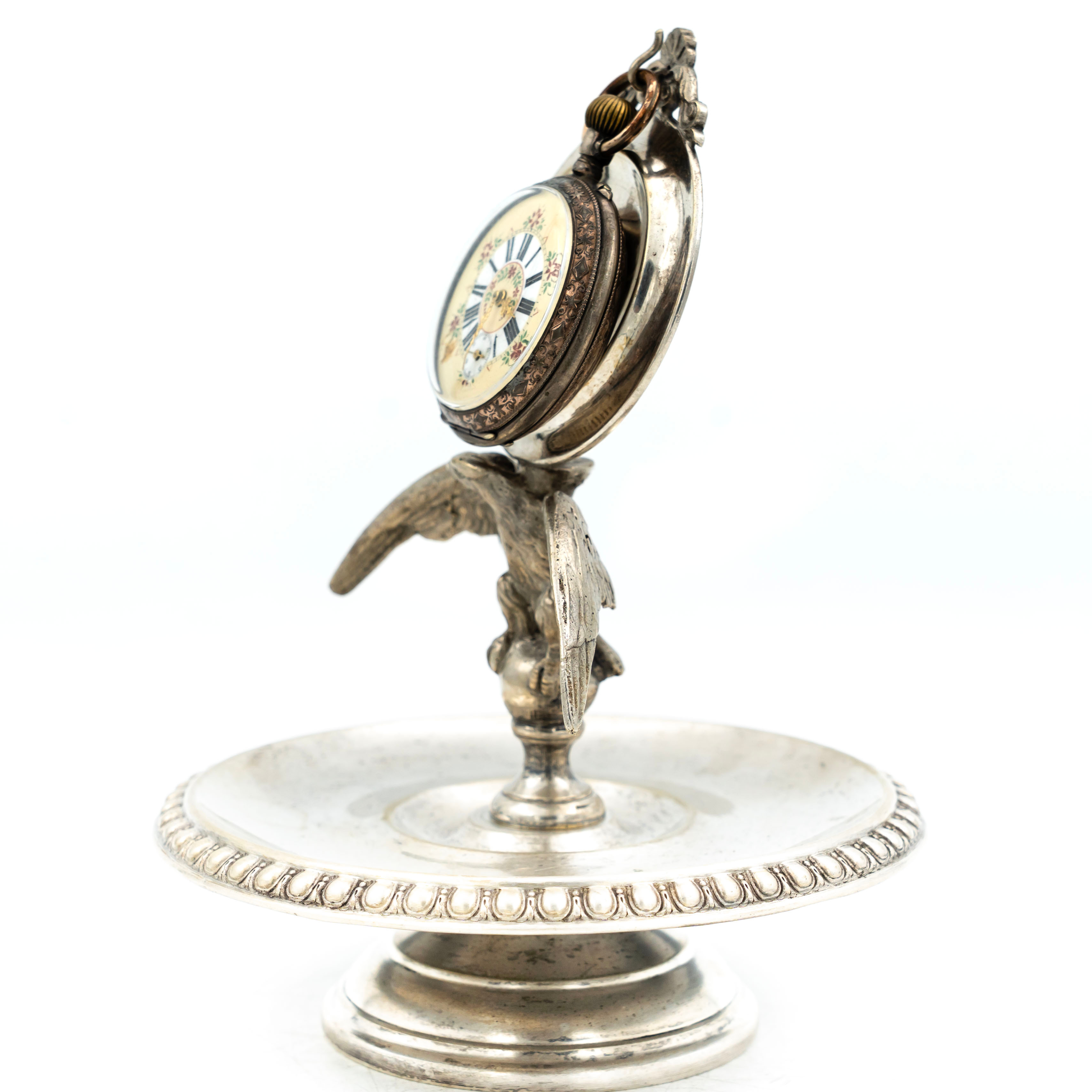 4963599. RELOJ DE BOLSILLO Y SOPORTE, Alpaca plateada.