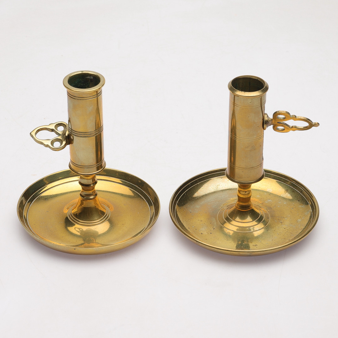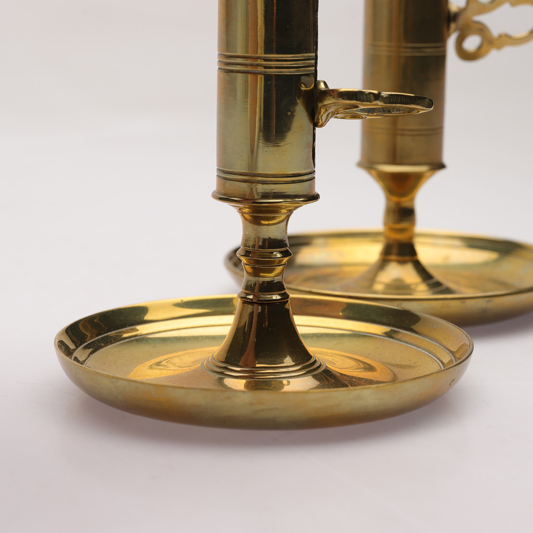 4969995. Dos candelabros de latón, siglo XX.